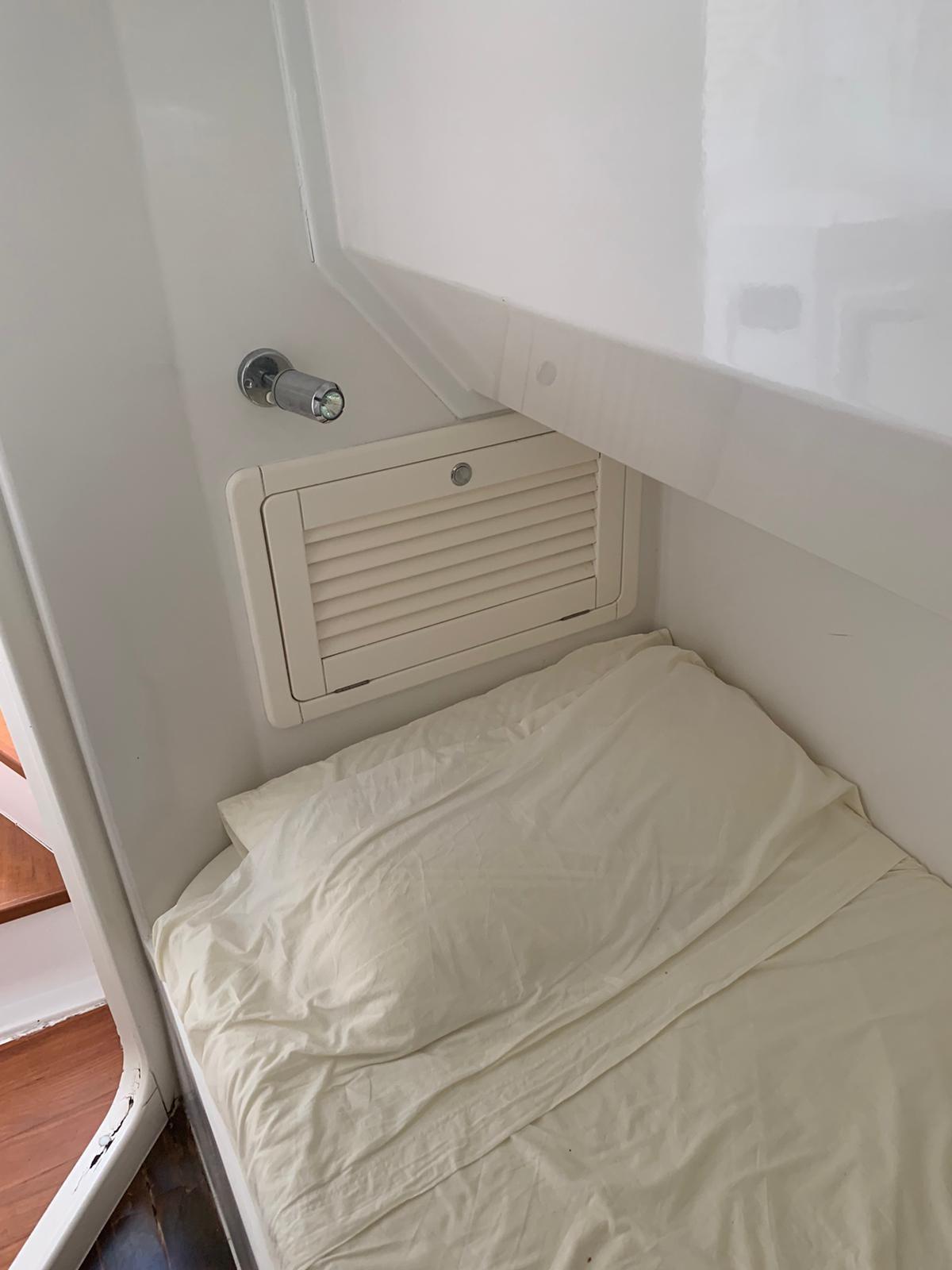 Cabina armatoriale con letto matrimoniale - cabina ospiti con due letti incrociati - bagno.