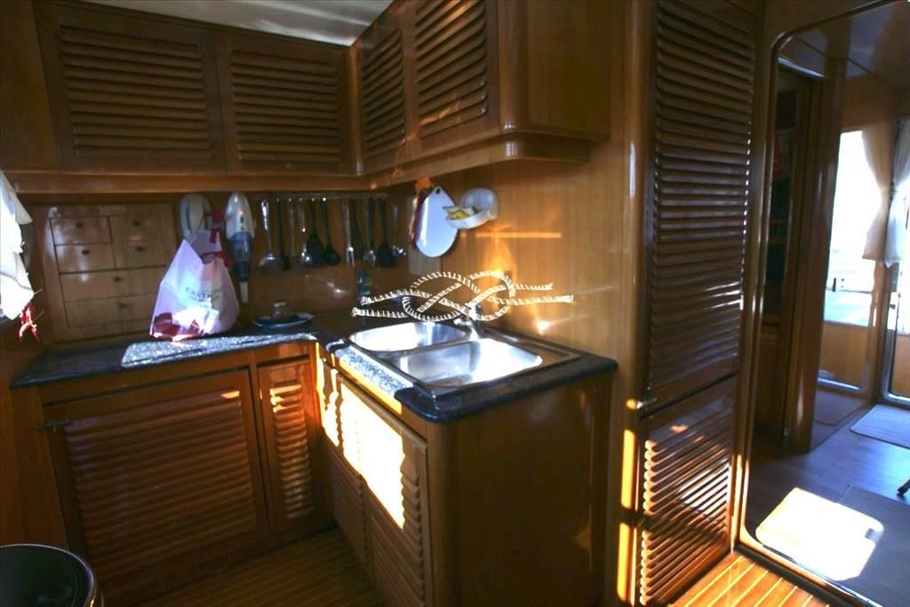 elica di prua elettrica Vetus - antenna SAT Intellian - TV LCD - gruppi elettrogeni Onan 2 x 25 kW - mobile bar su fly con grill, lavabo, frigo - tender con fuoribordo - passerella elettro idraulica - doppia ancora - lavatrice - asciugatrice - piano cottura 5 fuochi a gas - forno - frigo / freezer - aria condizionata.