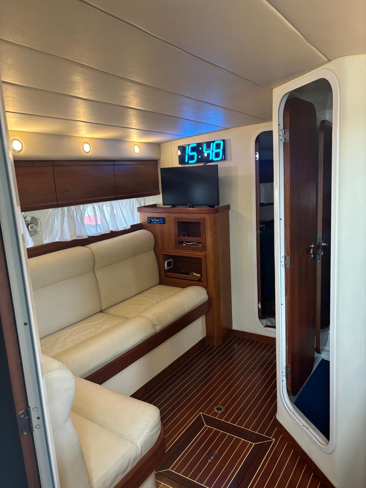Passarella elettro idraulica rotante - gruppo elettrogeno Paguro 3 kW - tendalino con struttura fissa - antenna TV - TV LCD - cucina con lavello, frigo inox e microonde - frigo in pozzetto - elica di prua.
