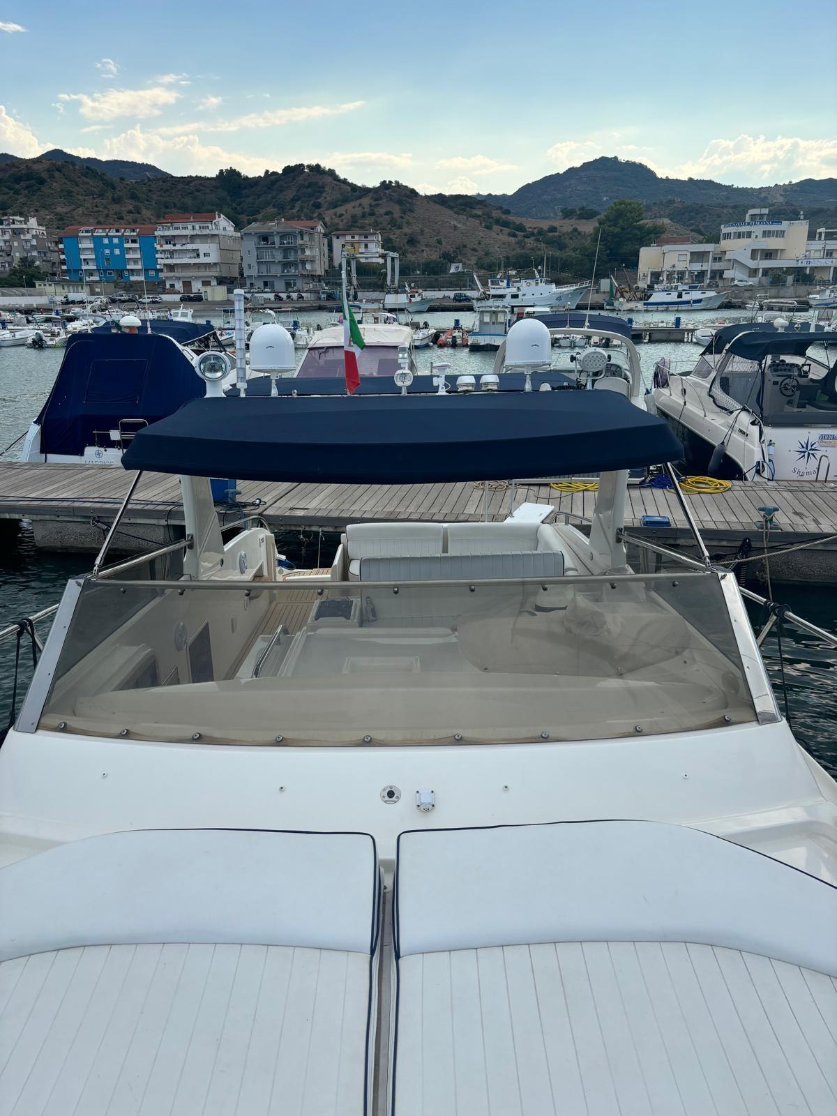 smontaggio e revisione piedi poppieri Mercruiser 3X (cuffie, olio, zinchi) - revisione delle pompe trim con sostituzione teleruttori elettrici - istallazione n. 6 luci subacquee blu - sostituzione trasduttore ecoscandaglio - revisione passerella idraulica (sostituzione tubi olio e pulsantiera nuova) - realizzazione cuscini nuovi per passerella (uso divano) - scritta di poppa in acciaio inox retroilluminato blu - manutenzione straordinaria motori Yanmar con sostituzione sensori pressione olio e zinchi interni, cambio olio e filtri - sostituzione filtri Racor - istallazione supporto motore ausiliario tender nel vano motore - smontaggio e sbarco generatore Paguro 3000 per manutenzione straordinaria - sostituzione cavi manette - nuovo frigo pozzetto - sostituzione batterie motori e servizi - sostituzione autoclave - nuovo sin-teak per pozzetto e pedana di poppa - nuovo forno microonde - nuovo tendalino rigido collegato al roll bar (anteriore e posteriore) - lucidatura murate - montaggio elica di prua.