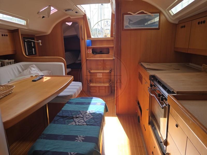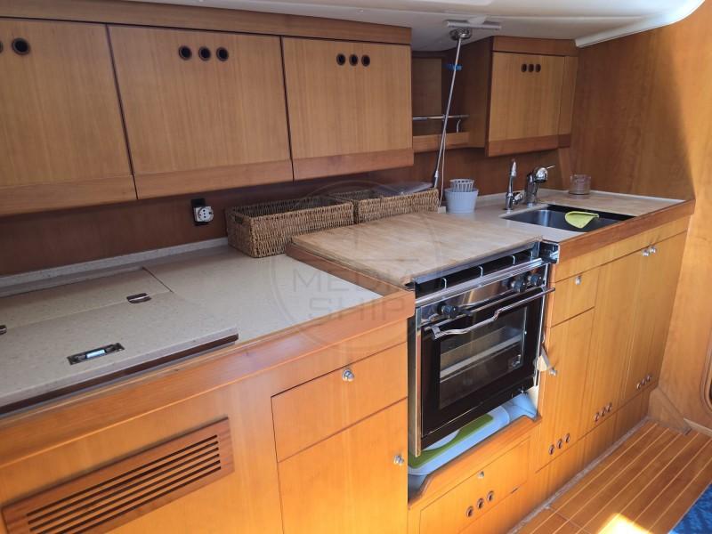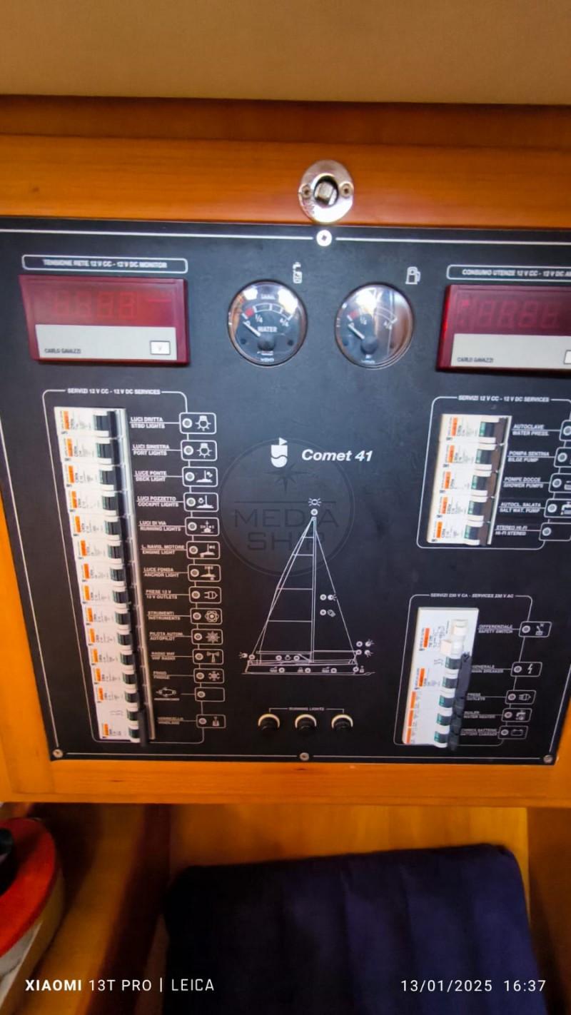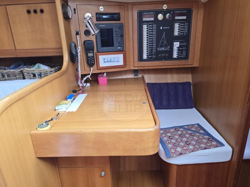 Il COMET 41S è nella versione con due cabine, di cui l’armatoriale di prua, e un ampio bagno con box doccia separato. È stato sempre mantenuto in modo impeccabile dal suo unico proprietario, ed è ottimamente equipaggiato, con: rotaia per la randa full batten Harken, trinchetta amovibile, bompresso in acciaio, sartiame in tondino, pannello solare, riscaldamento Webasto, autopilota, elica J-Prop 3 pale, cappottina paraspruzzi, gruetta a scomparsa per fuoribordo, elettronica Raymarine con 3 jumbo all’albero, impianto Hi-Fi con altoparlanti interni ed esterni.
