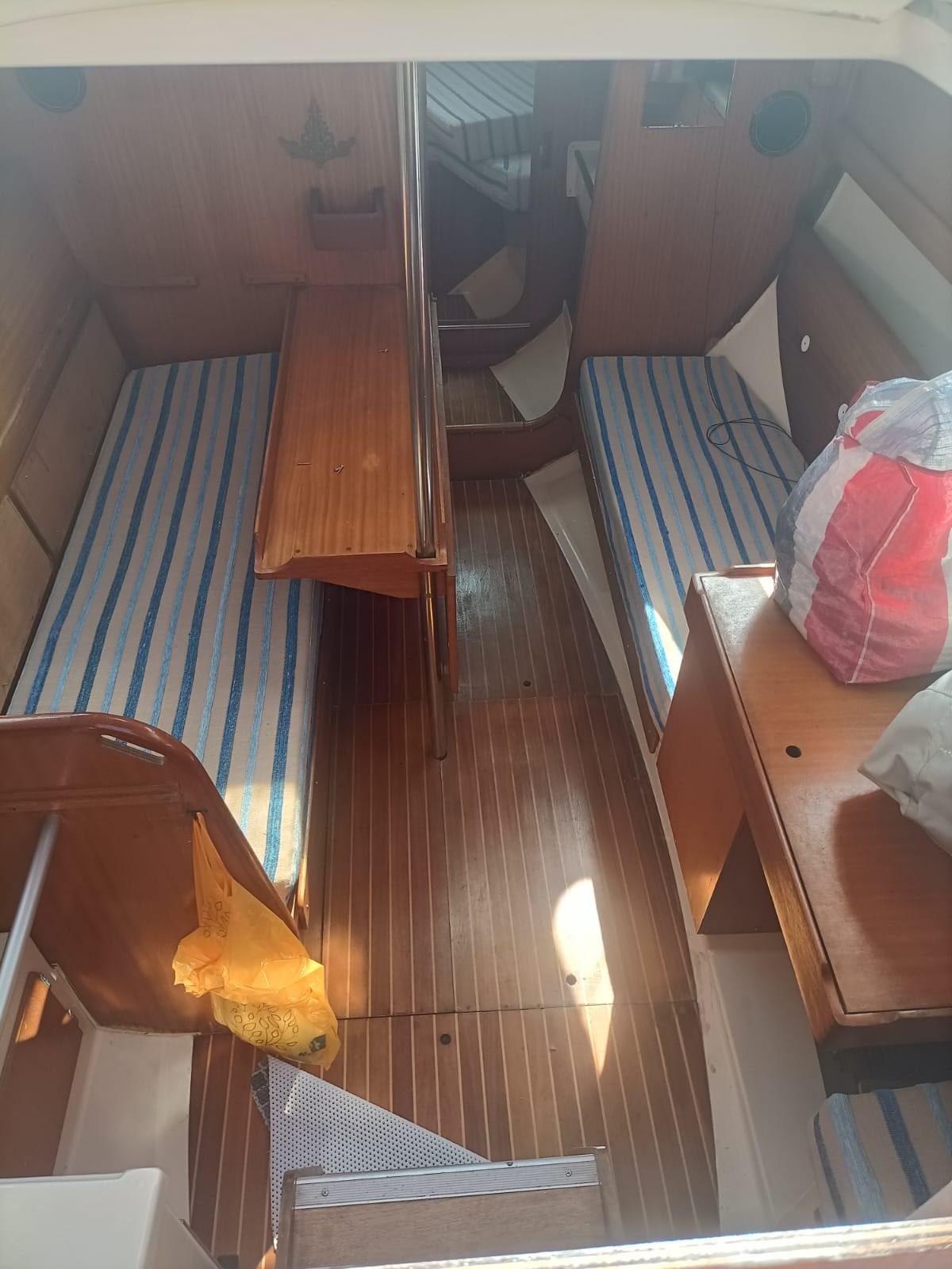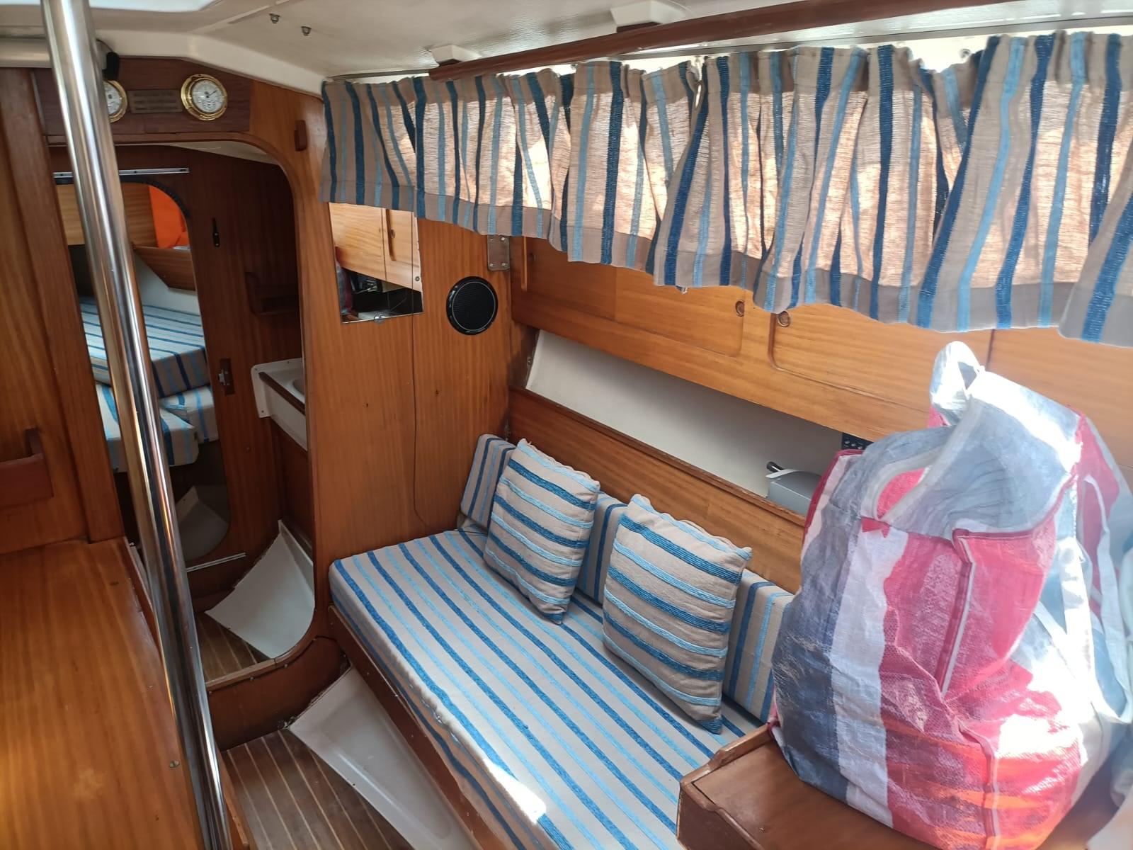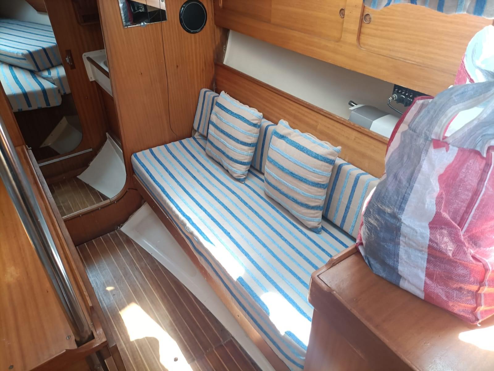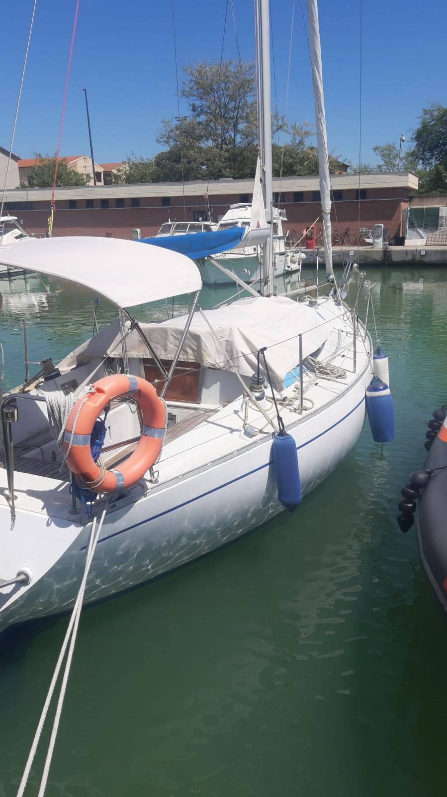 Caratteristiche particolari : - rollaranda (sul boma) e rollafiocco - motore Yanmar da 28 CV con poche ore di moto ( lo standard è da 14 CV), doppio filtro gasolio - scafo : trattamento antiosmosi in cantiere, con verifica tecnico-strumentale specializzata su vetroresina e perni bulbo ; valvole a scafo nuove, pozzetto in teak nuovo - Strumentazione elettr. vento + ecoscandaglio + pilota automatico + presa da terra- 6 cuccette , cuscineria brande totalmente nuova, frigo - Gennaker nuovo con calza - 2 eliche : una a due pale fisse, una a tre pale chiudibili- WC marino con scarico elettrico