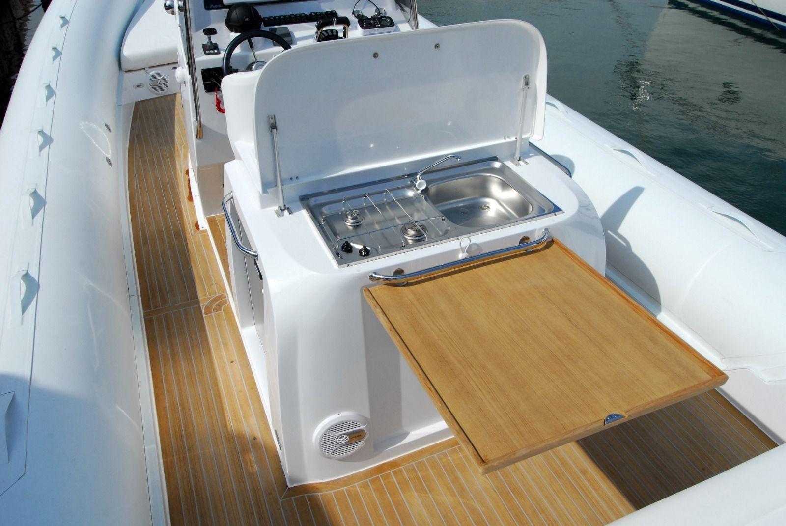 Autoclave, Camminamenti laterali in teak, Doccia esterna, Piattaforma, Ponte in teak, Pozzetto Teak, Presa 220V banchina, Salpa Ancore Elettrico, 2 Scaletta da bagno, Tavolo pozzetto.