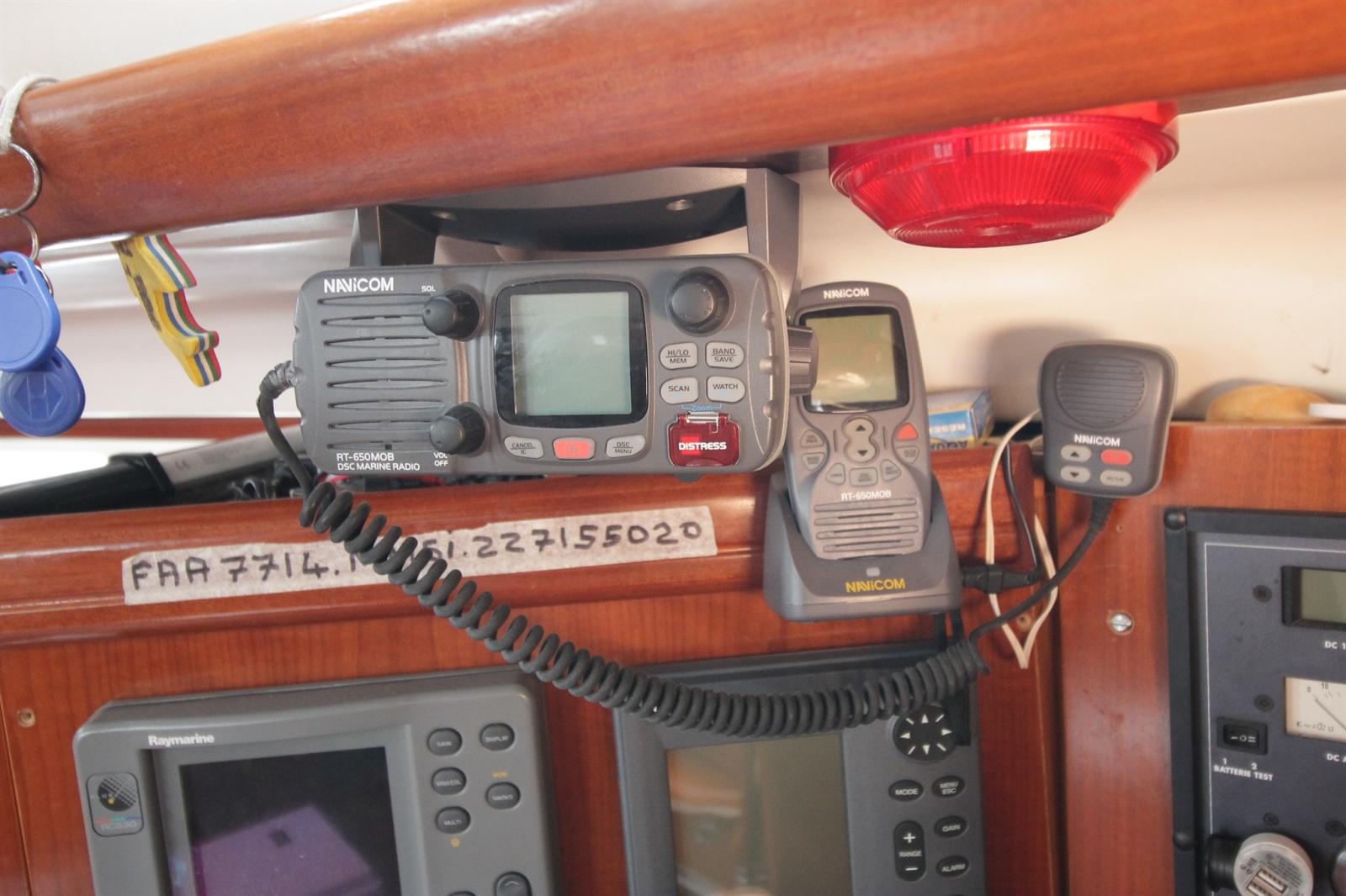 AIS (en recption sur vhf), 2 Bussola, DSC vhf (navicom RT650DSC), Pilota automatico (hydraulique lecomble et schmitt avec RAYMARINE ST 6001), Plotter (RAYMARINE RC 530), Radar (PATHFINDER RL70), Sonar (RAYMARINE ST60), Stazione vento (RAYMARINE ST60).