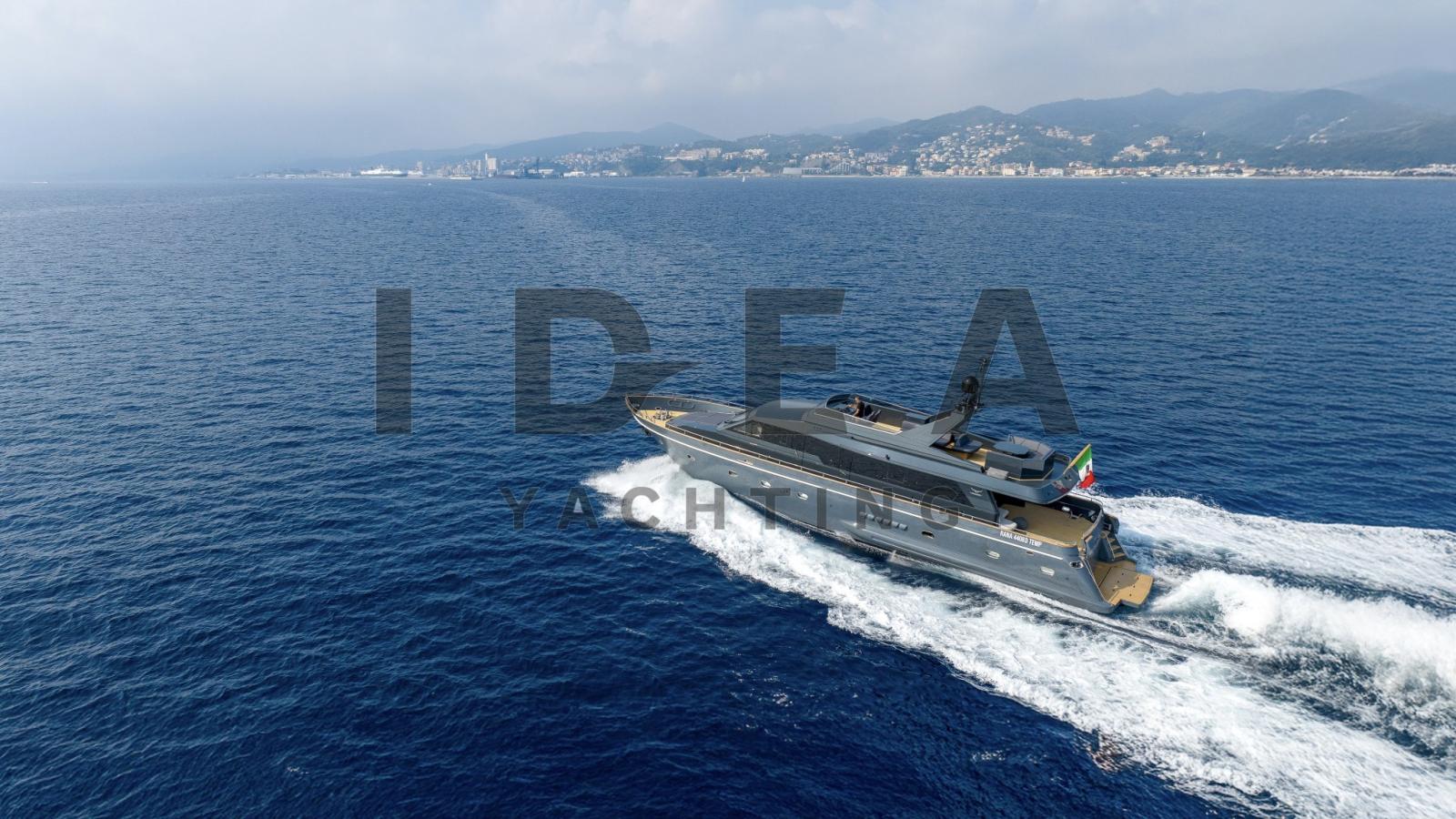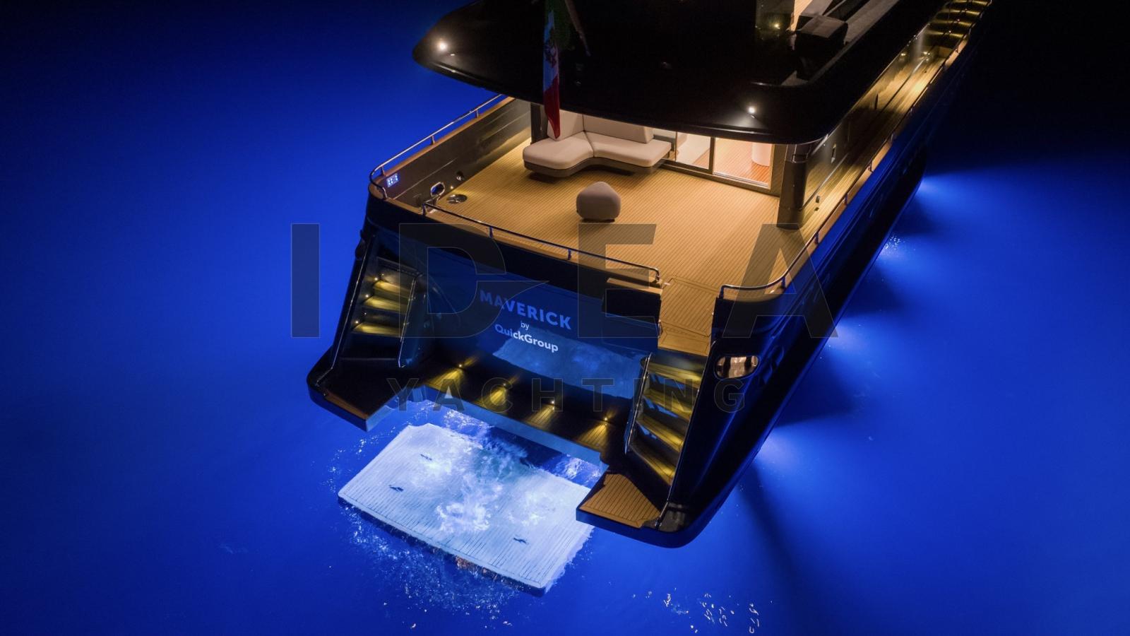 Batterie (12x12V), Camminamenti laterali in teak, Elica di poppa - stern thruster (Quick), Elica di prua - bow thruster (Quick), Impianto antincendio (Plytechno Engineering Srl), Luci di cortesia, Luci subacquee, Passerella (Sanguineti), Piattaforma (Sanguineti - up/down system), Ponte in teak, Porta ingresso, Pozzetto Teak, Presa acqua banchina, Salpa Ancore Elettrico (Quick), Sistema Depurazione acque nere, 4 Stabilizzatori (Quick Gyro + Fins), 2 Winch Elettrico (inox 2000W 24V), Winch tonneggio di poppa, Winch tonneggio di prua.