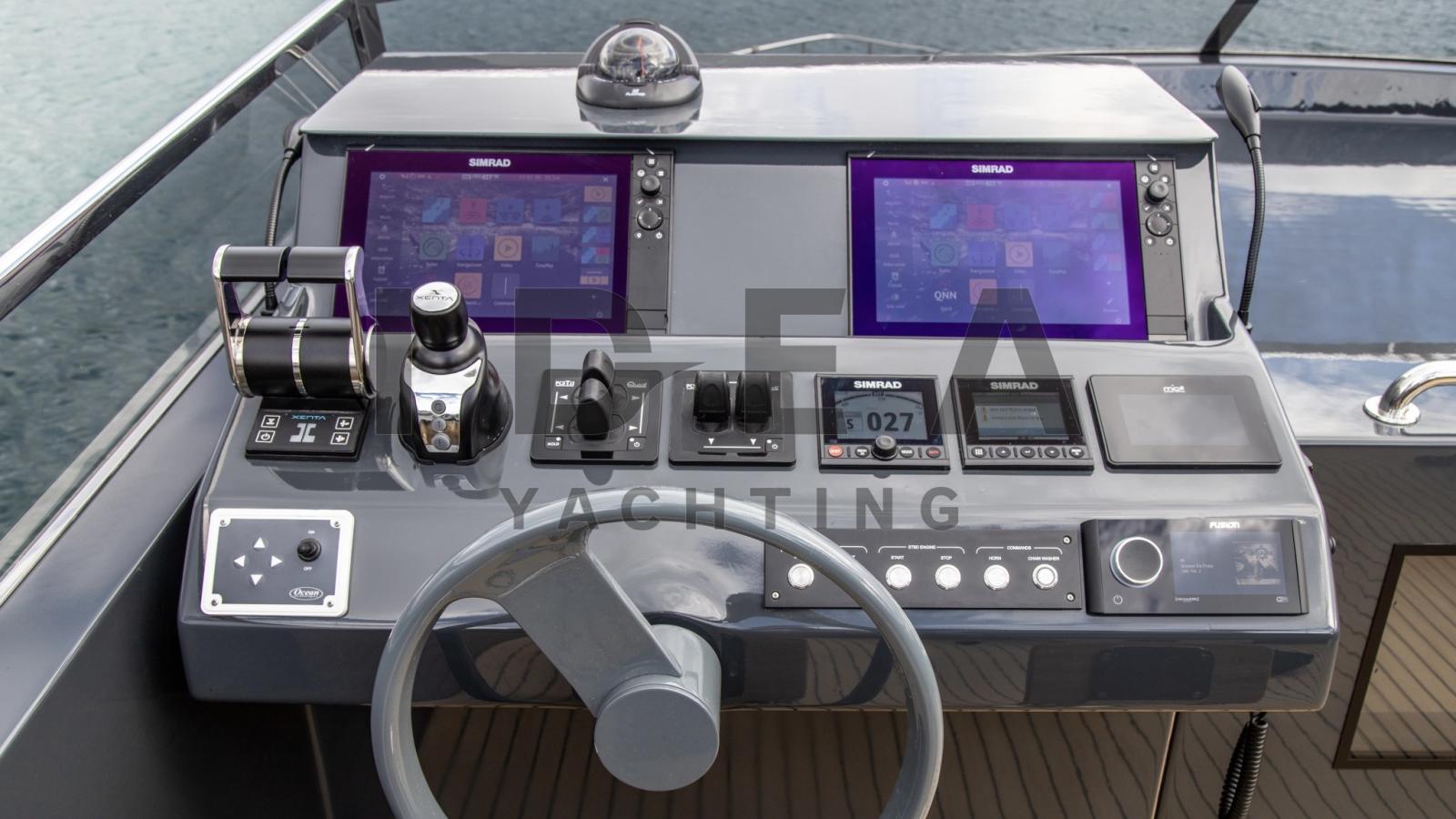 Contametri catena (Quick), Display (Simrad), Ecoscandaglio (Simrad), GPS (Simrad), Pilota automatico (Simrad), Plotter con antenna GPS, Radar (Simrad), Radio VHF (Simrad), Sedile Copilota, Sistema di posizionamento dinamico.