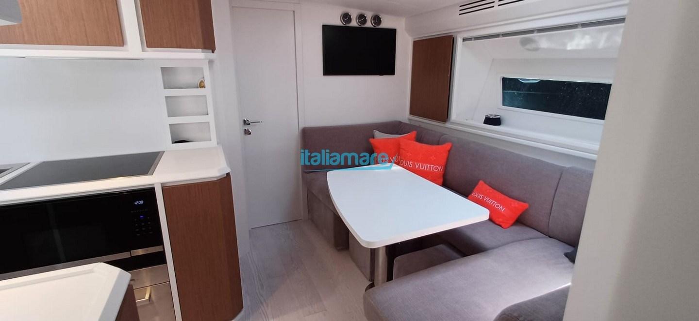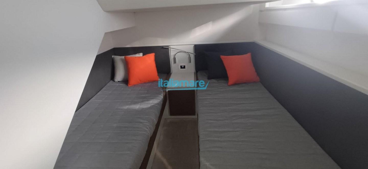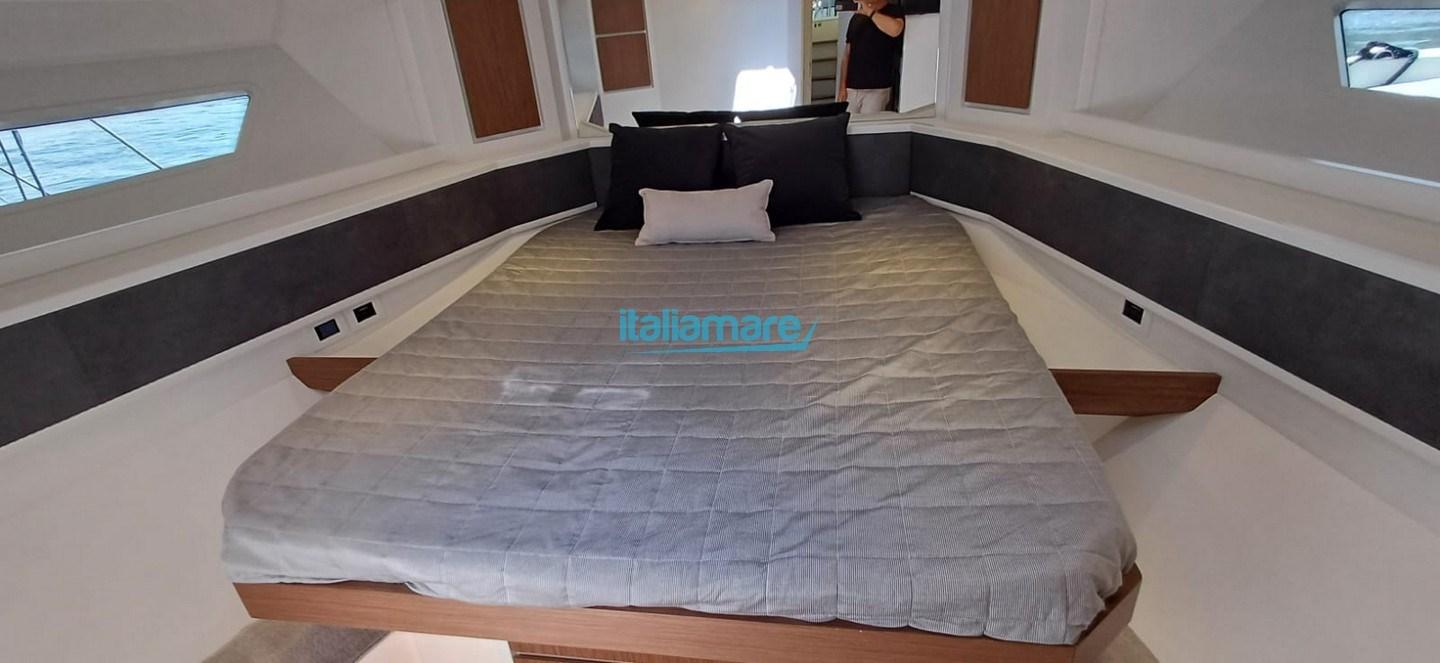 Gli interni, sobri ma raffinati, combinano eleganza e funzionalità. La disposizione è pensata per offrire privacy e comodità a bordo, con ambienti luminosi, arredi essenziali e materiali pregiati. Ogni spazio è progettato per garantire una vita a bordo piacevole, che si tratti di una breve crociera o di un’intera vacanza in mare.