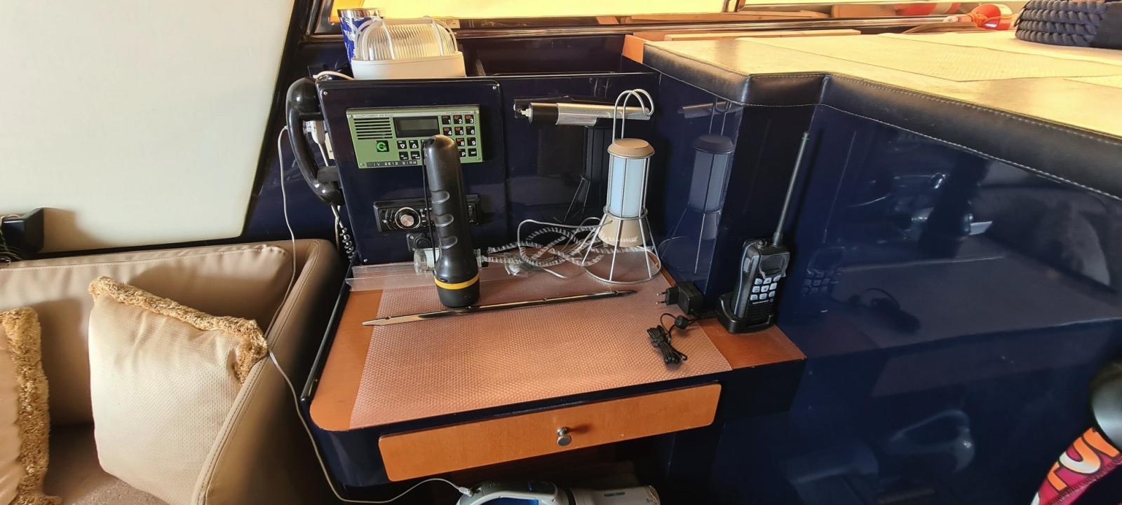 verniciatura del verde esterno - sostituzione di tutte le luci di bordo esterne e interne a LED - nuovo impianto TV digitale con antenna amplificata e due TV LCD - istallazione prese 220v supplementari - rifacimento impianto elettrico quadro faretti fly - rifacimento impianto 12v fly e prese 12v dinette - sostituzione stereo dinette - nuovo kit maceratore bagno armatore e bagno ospiti - nuovo wc manuale equipaggio - sostituzione staccabatterie con nuovi staccabatterie elettronici - scollegamento e verifica di ogni batteria (motori e servizi) - sostituzione boiler - nuova piastra vetroceramica - istallazione staccabatteria per parallelo gruppo elettrogeno - sostituzione delle luci neon con strisce LED - installazione di faretti di cortesia nel pozzetto - installazione valvole supplementari per sistema evaquazione sentine (Lupe) - passerella elettro idraulica nuova.