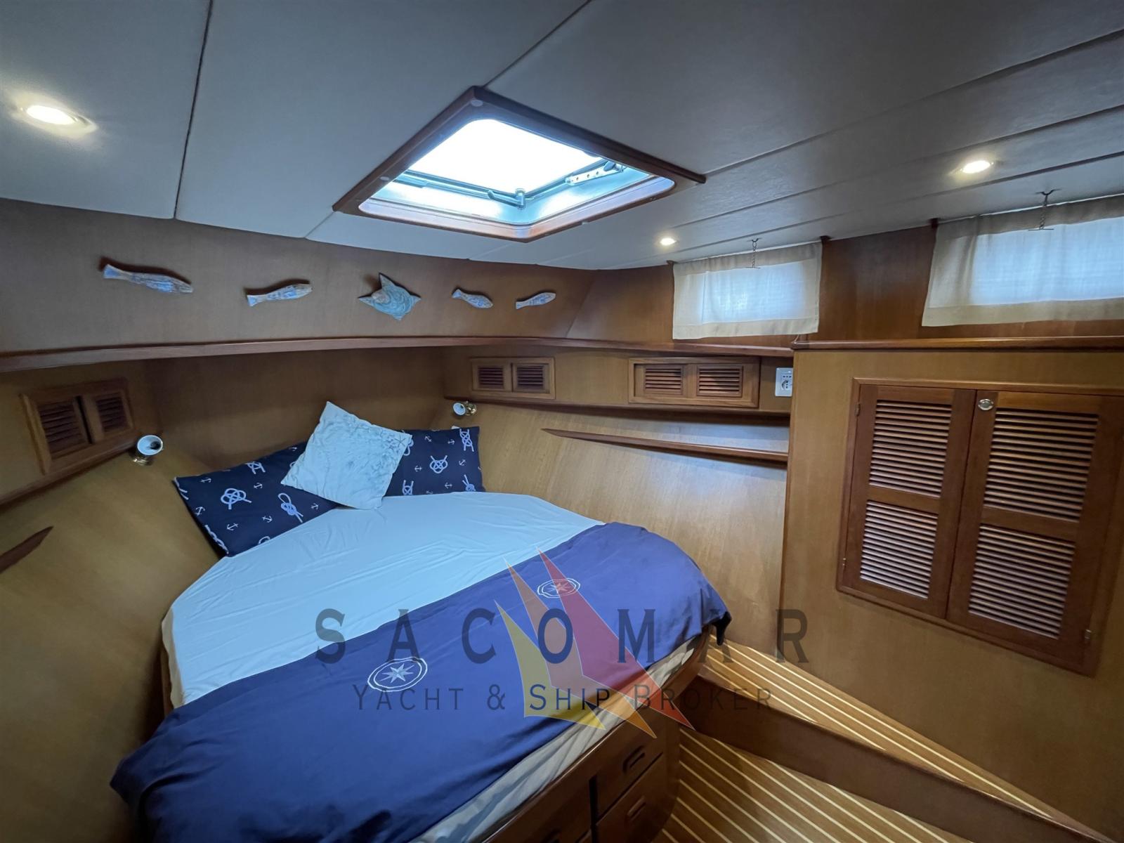 Alaska 12,70 e un trawler con ampi spazi e molto ben costruito con rifiniture di qualità. 2 cabine con armatoriale a prua e doppia letti in piano con un bagno molto grande.