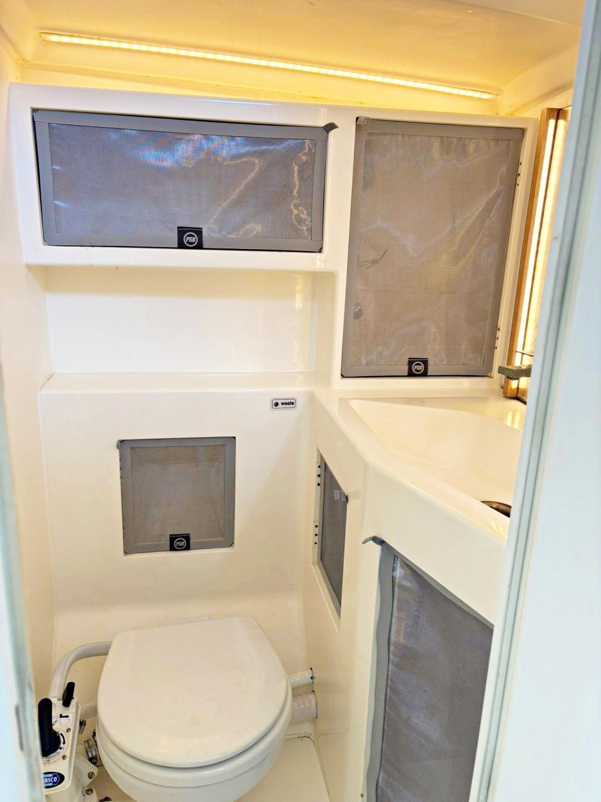 Impianto acque nere, Prese interne 12v, Serbatoio Acque Nere, WC marino manuale.