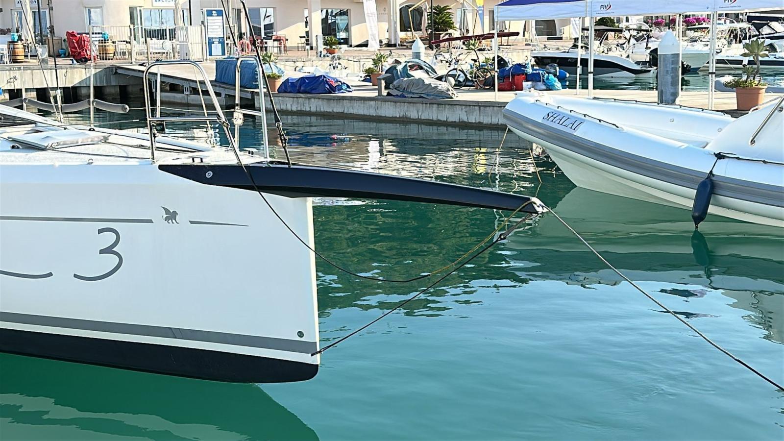 Autoclave, 2 Batterie, Doccia esterna, Pompa di sentina manuale, Presa 220V banchina, Ripetitore strumentazione, Sartiame in tondino (Carbon EC3 SouthernSpars 2025), Tuff Luff (2025), 6 Winch, Windex.