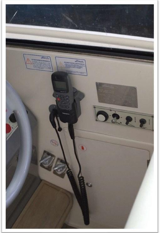 Angolo barra, Comando motori elettronico (manette elettroniche), Contametri catena (Quick digitale), Display, Pilota automatico (Tridata autohelm ST60+), Plotter con antenna GPS (Garmin GeoMap 4010), Radio VHF (Raymarine 240E).
