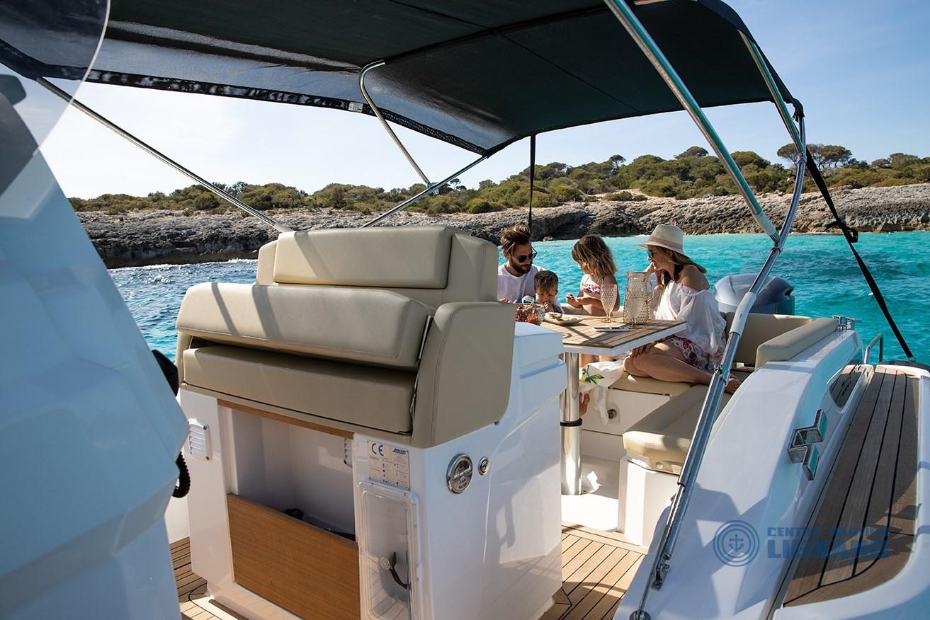 Dotazioni standard: Casse audio x 4 - Carica Batterie 12V, 40 AMP con presa e cavo banchina - Certificato CE - Colore carena - Consolle con parabrezza e tientibene inox - Cuscineria prendisole + sedile guida - Doccia a soffione - Frigorifero lt. 61 - Ganci per sospendite - Ganci sci - Gonfiatore elettrico - Impianto doccia - Impianto WC con maceratore, tanica acque nere + Set doccia - Kit riparazione - Lavabo - Luci di navigazione - Manuale Utente - Pagaia con mezzo marinaio - Pannello utenze (10 funzioni) - Pompa di sentina - Scaletta a incasso INOX - Segnalatore acustico - Serbatoio acqua lt. 140 - Serbatoio carburante inox lt. 600 + Blower - Tagliere - Tasca porta cime di poppa - Tavolo con gamba inox + Cuscino prolunga prendisole - Tendalino parasole - Verricello elettrico con ancora e catena