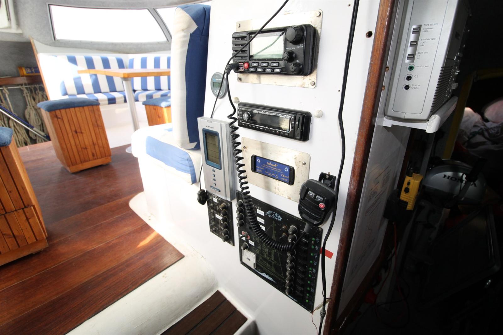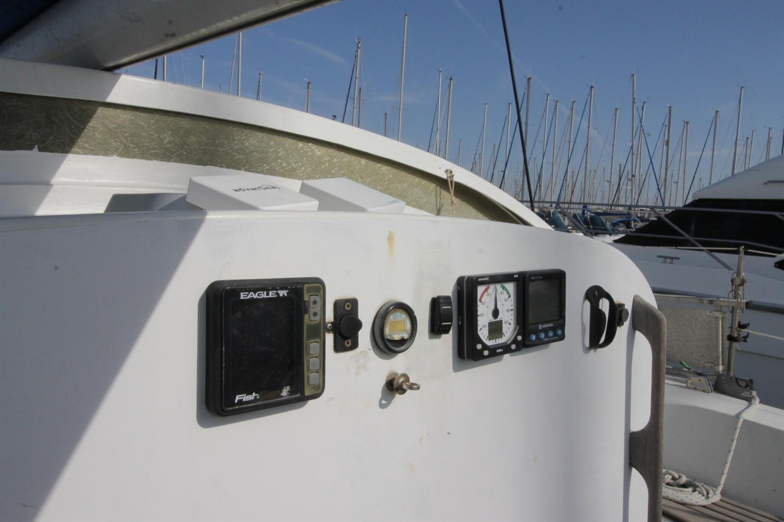 AIS (Seatracer class B (emet/recept)), DSC vhf (STANDARD HORIZON GX 2000), 2 Pilota automatico, Radio VHF (portable), Sonar, Stazione vento (remplacé par ADVANSEA).