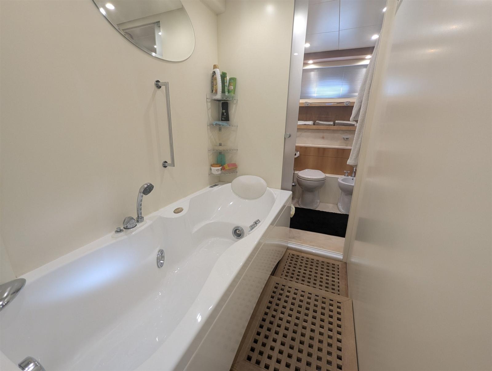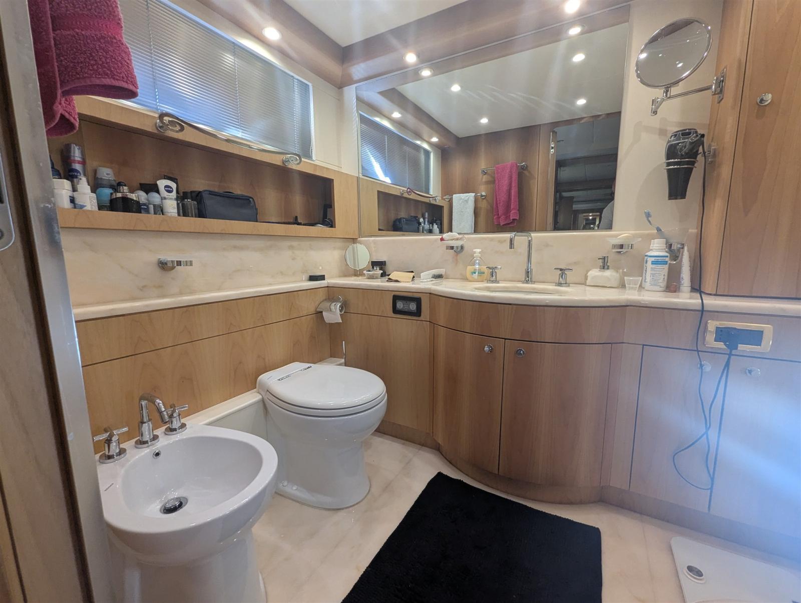Aria condizionata (doppio ciclo), Boiler (bivalente), Clima reversibile, Dissalatore (Idromar), Impianto acque nere, Pavimento interno in legno, Prese interne 12v, Prese interne 220v, Serbatoio Acque Nere, 3 Telecamera (cockpit & engine room), 5 WC marino elettrico.