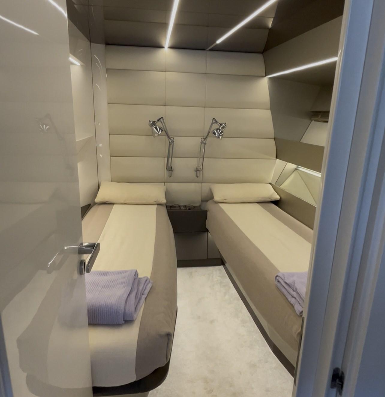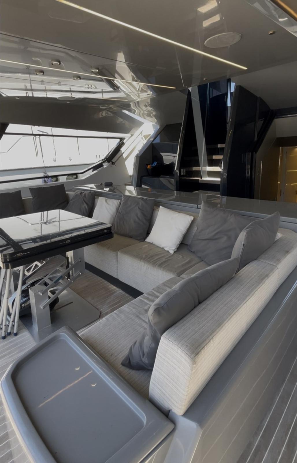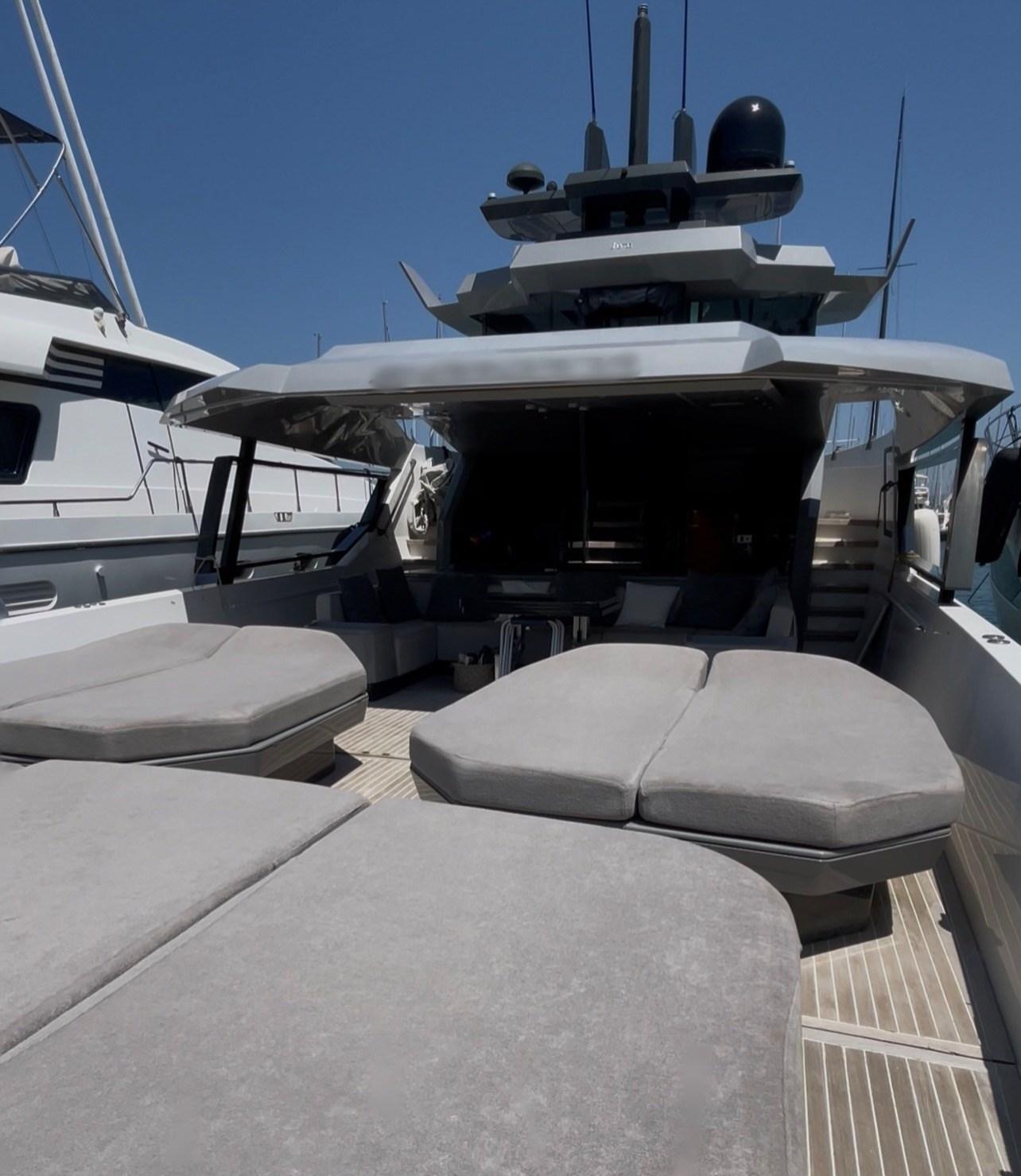 Apertura Vano Motore Elettrica, Camminamenti laterali in teak, Impianto antincendio, Luci di cortesia, Luci subacquee, Pannelli Solari (4kw), Passerella, Pompa di sentina automatica, Ponte in teak, Pozzetto Teak, Presa 220V banchina, Presa acqua banchina, Salpa Ancore Elettrico, Stabilizzatori, Tavolo Salone Abbattibile, Tromba.