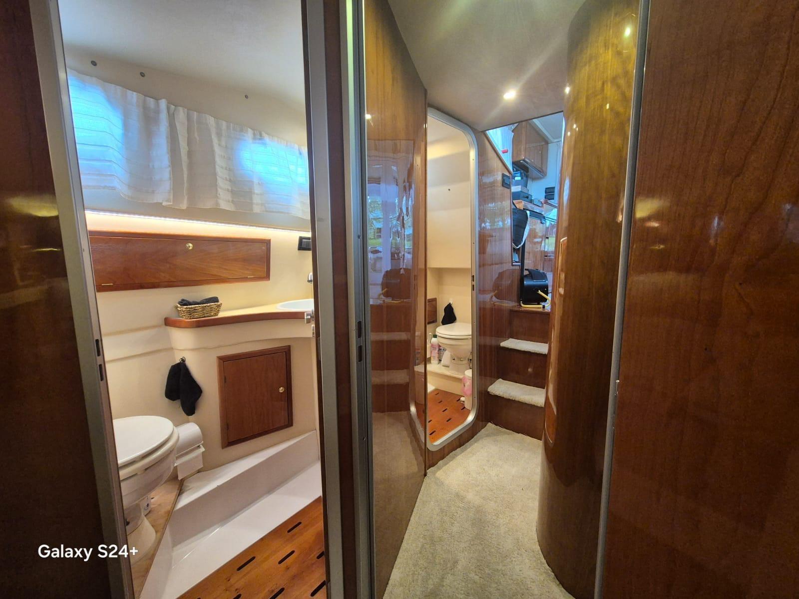 Cabina armatore a prua con letto a penisola + bagno - Cabina ospiti con letti in piano + bagno