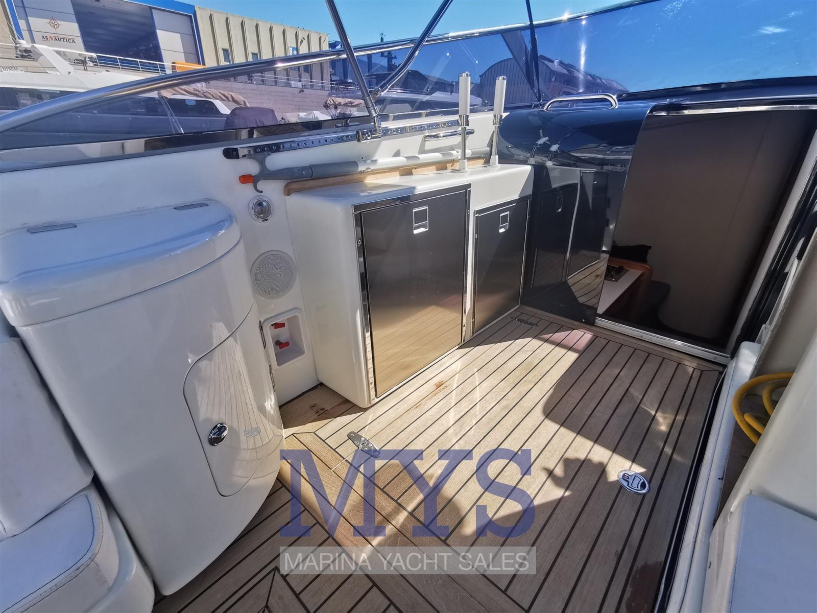 Allarme motore, Allarme sentina, Autoclave, Camminamenti laterali in teak, Doccia esterna (anche a prua), 2 Flap elettrici, Impianto antincendio, Lavandino nel Pozzetto, Luci di cortesia, Luci subacquee, Piattaforma, Porta ingresso, Pozzetto Teak, Presa 220V banchina, Salpa Ancore Elettrico, Scaletta da bagno, Tavolo pozzetto (elettrico), Tromba.