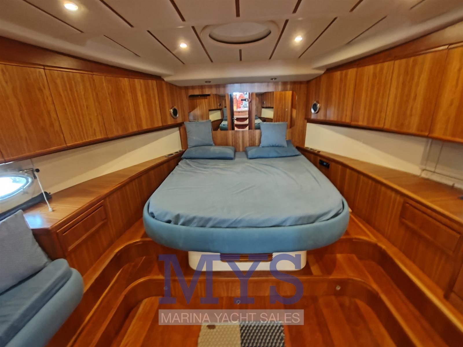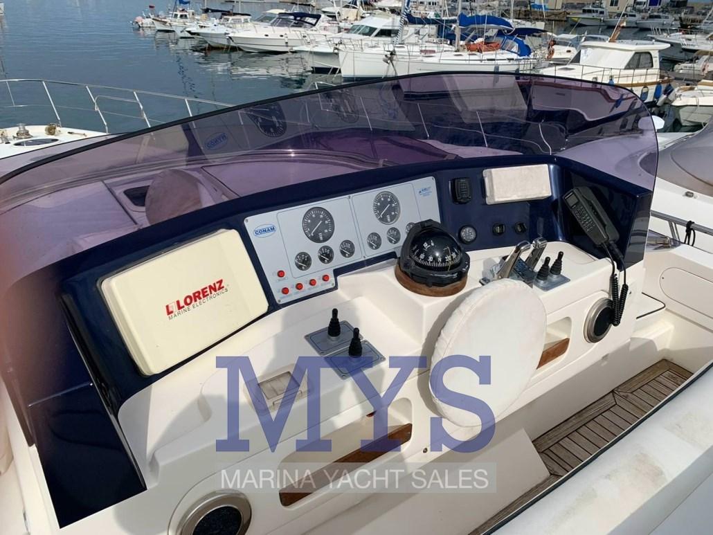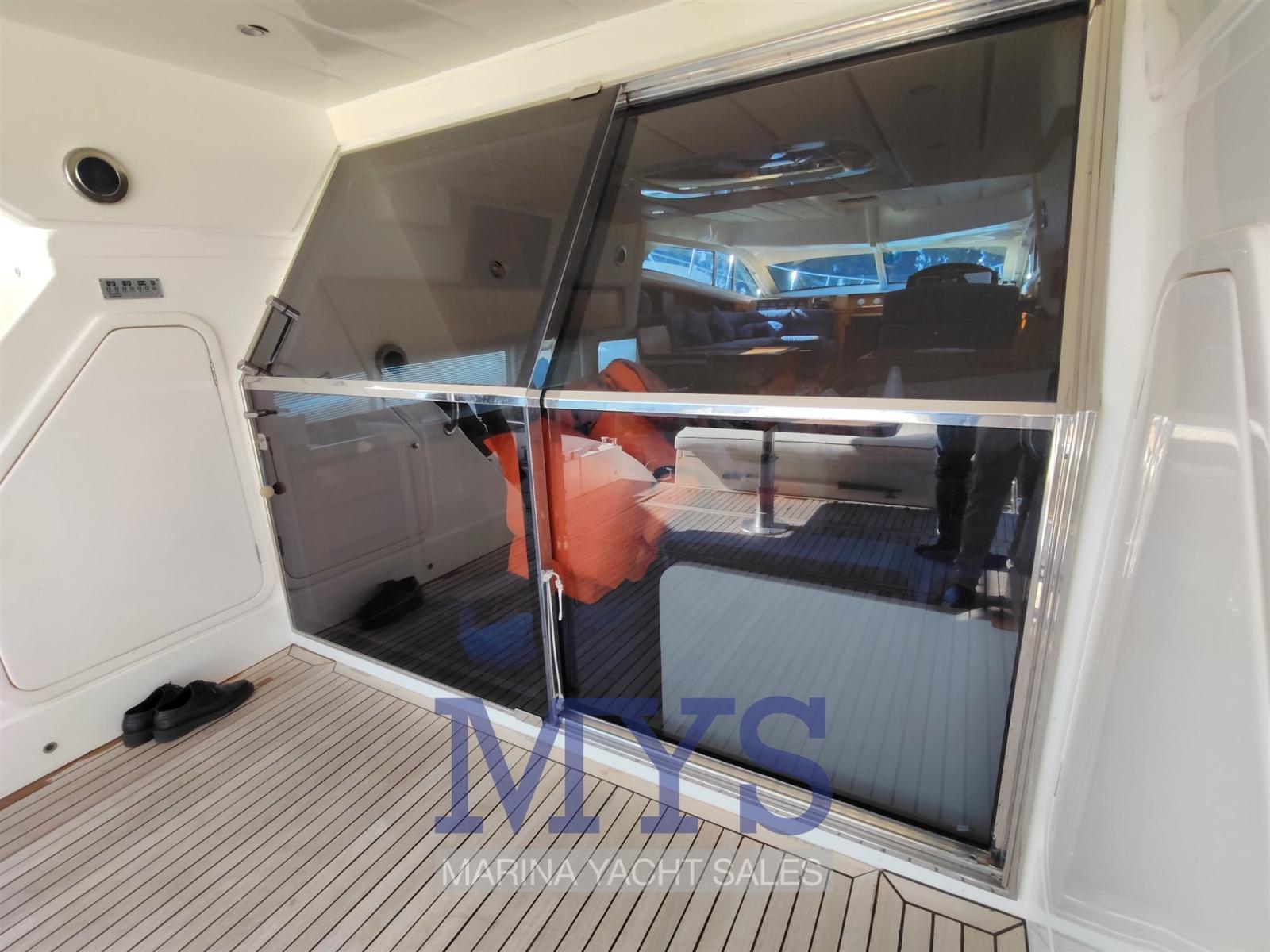Allarme motore, Allarme sentina, Apertura Vano Motore Elettrica, Autoclave, 9 Batterie, Doccia esterna, Doppia timoneria, 2 Flap elettrici (bennett), Flap fissi, Impianto antincendio, Indicatori Flaps, Luci di cortesia, Luci subacquee, Passerella (a scomparsa), Pozzetto Teak, Presa 220V banchina, Presa acqua banchina, Salpa Ancore Elettrico, Scala reale, Sistema Depurazione acque nere, Tavolo pozzetto, Tavolo Salone Abbattibile (interno), Tromba, 3 Winch tonneggio di poppa, Winch tonneggio di prua.