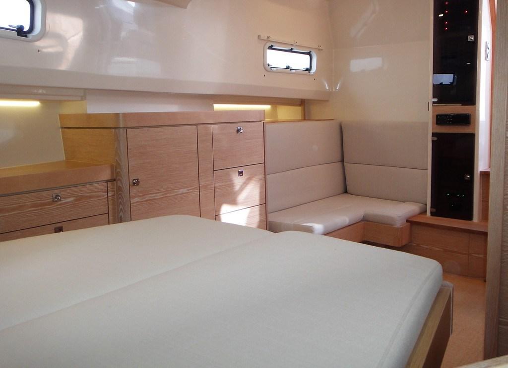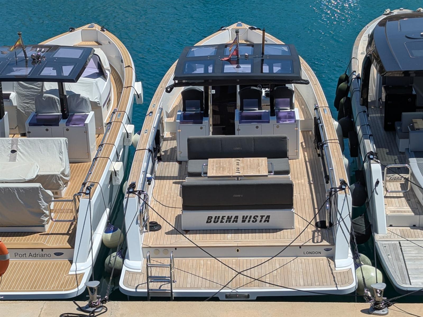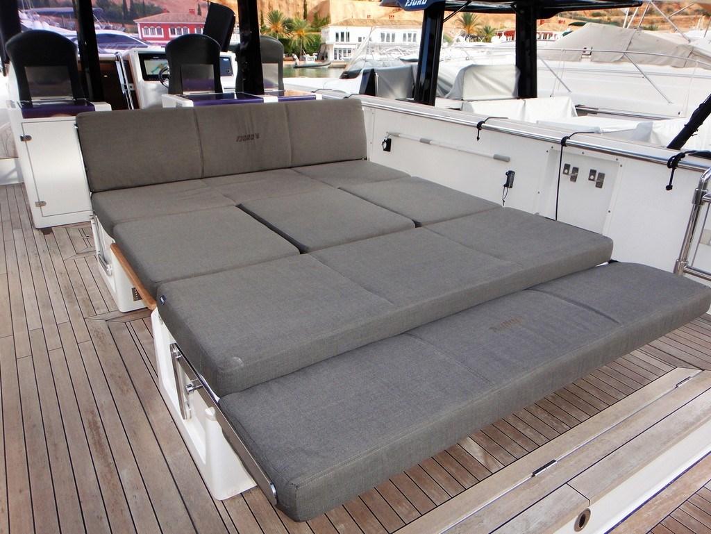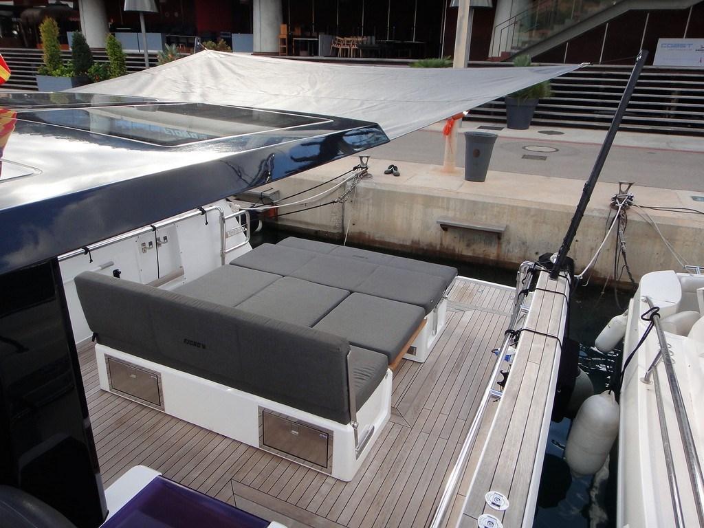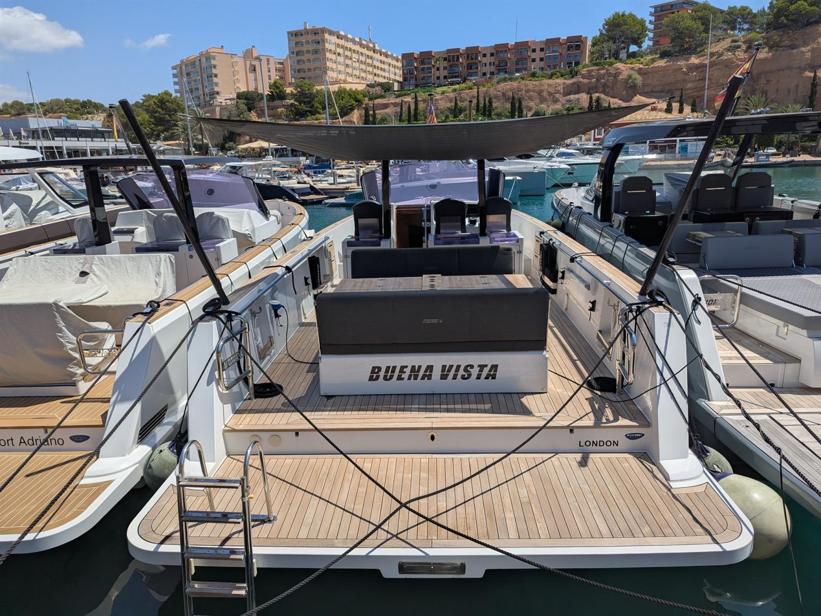 Allarme sentina, Alternatore, Autoclave, 6 Bitte Abbattibili, Bocche di Lupa, Camminamenti laterali in teak, Doccia esterna, Flap elettrici (Volvo Penta BTS), Impianto antincendio (Fire buoy), Indicatori Flaps, Lavandino nel Pozzetto, Piattaforma (enlarged swimming platform), Pompa di sentina automatica, Pompa di sentina manuale, Ponte in teak, Porta ingresso (sliding), Presa 220V banchina, Salpa Ancore Elettrico, Scaletta da bagno, Tavolo pozzetto (with teak and electric pedestal), 2 Tientibene con cancelletti, T-Top.