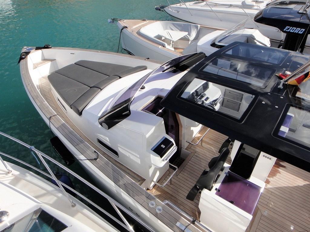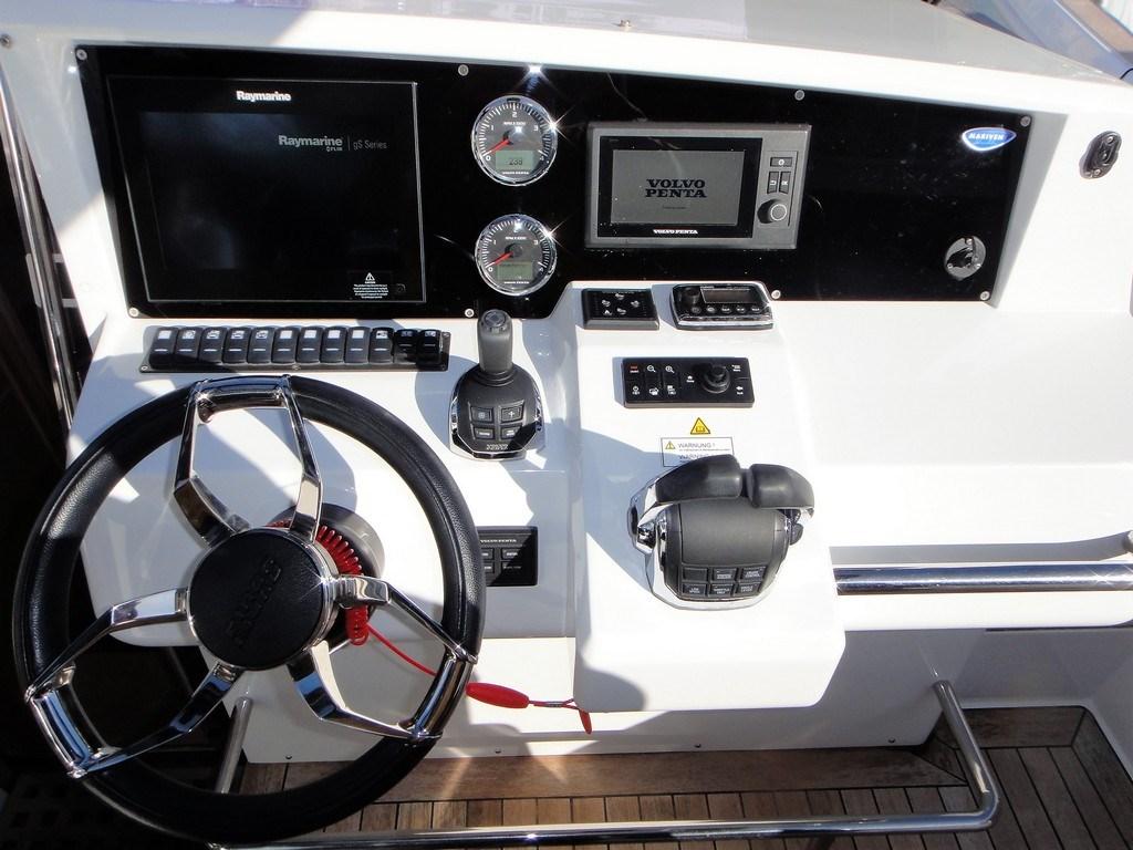 Angolo barra, Comando motori elettronico (EVC), 3 Display (Volvo Penta analogic RPM + 7" display), DSC vhf, Joystick, Plotter (Raymarine), 2 Sedile Copilota.