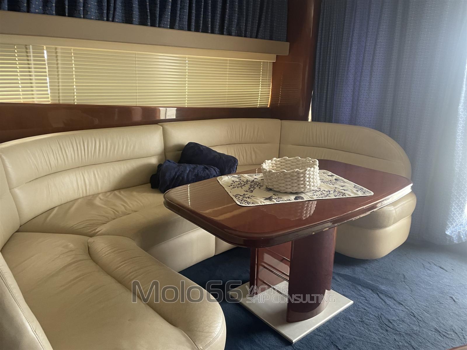 Allarme motore, Allarme sentina, Autoclave, Doccia esterna, Doppia timoneria, Faro orientabile, Flap idraulici, Impianto antincendio, Passerella (elettrica), Pozzetto Teak, Presa 220V banchina, Ripetitore strumentazione, Salpa Ancore Elettrico, Scaletta da bagno, Tender.