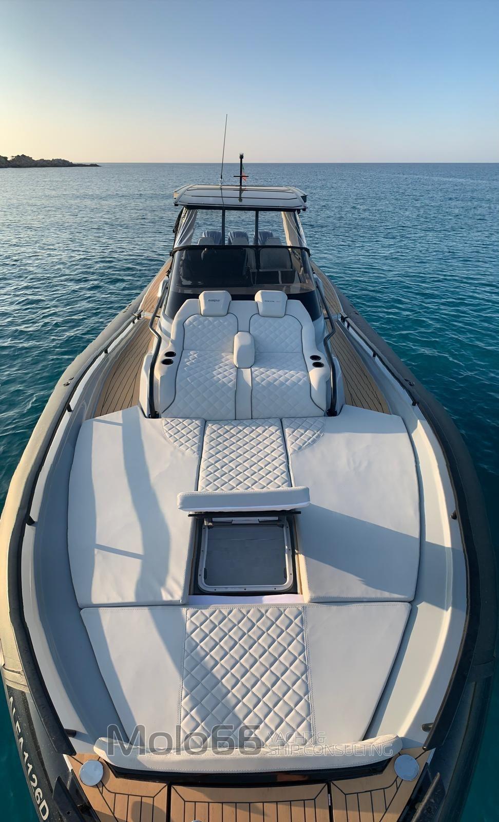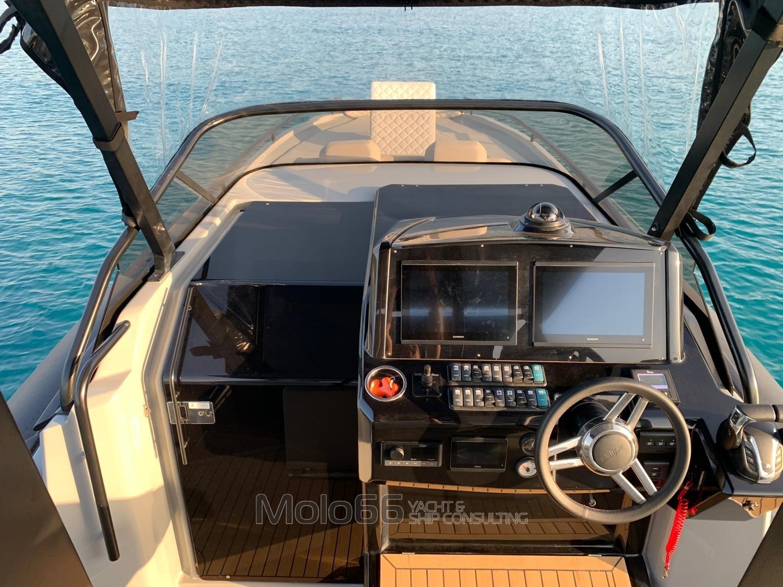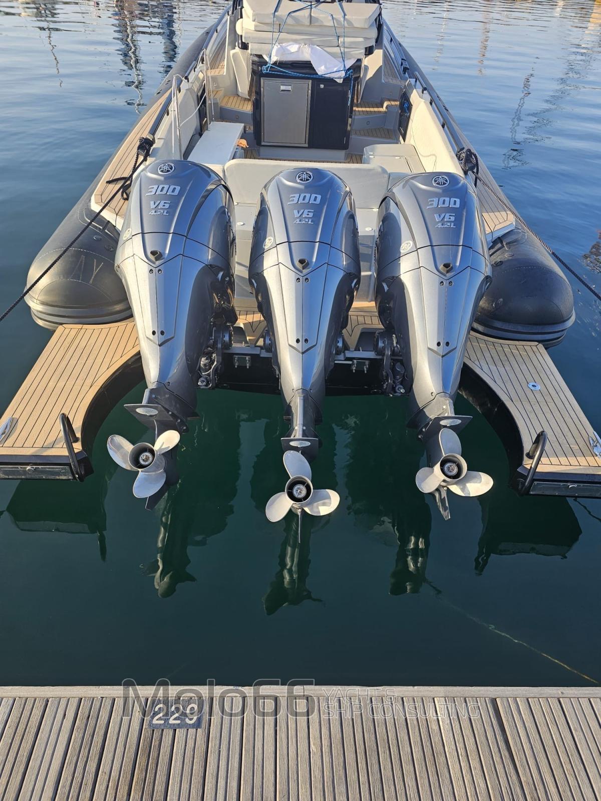 Allarme motore, Allarme sentina, Autoclave, Bitte Abbattibili, Doccia esterna, Impianto antincendio, Luci subacquee, Passerella, Ponte in teak (Sintetico), Pozzetto Teak (Sitetico), Presa 220V banchina, Raddrizzatore, Rollbar, Salpa Ancore Elettrico, Tavolo pozzetto, Tromba, T-Top.