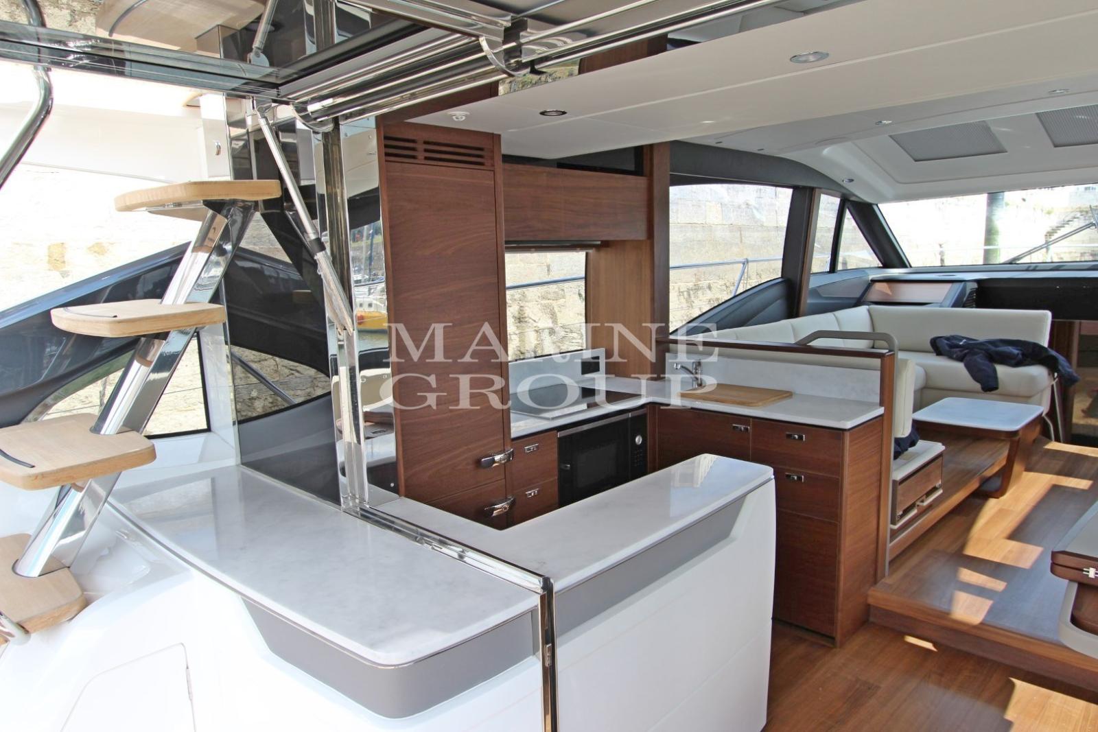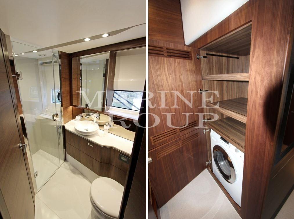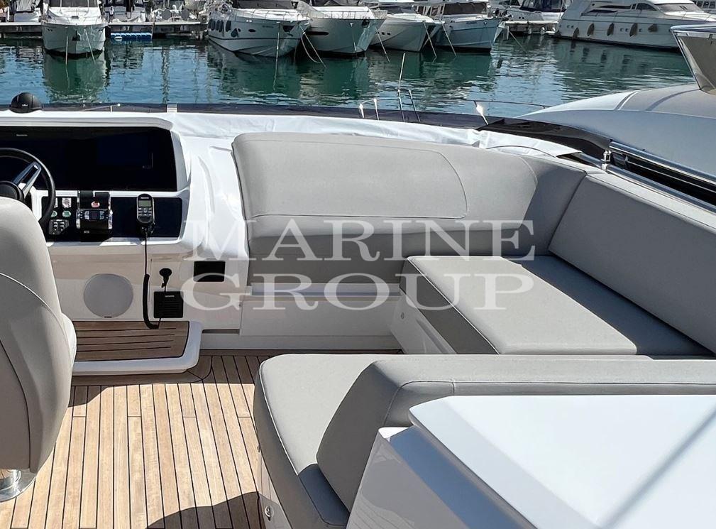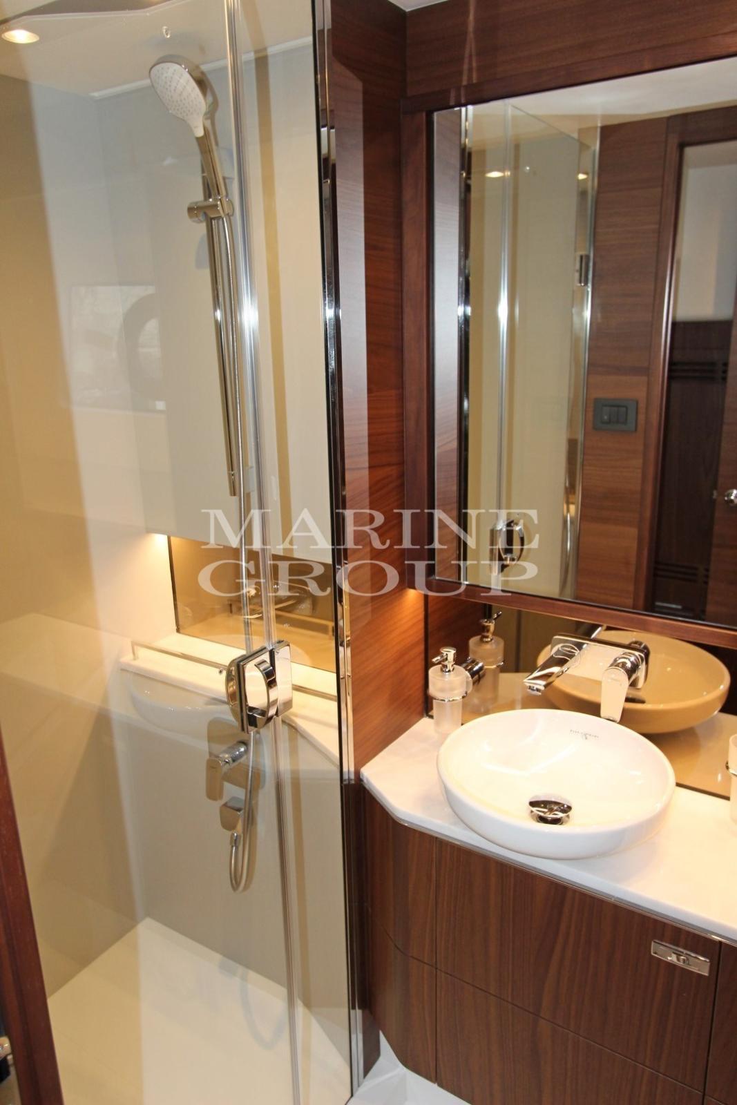 Elica di poppa e di prua a velocità variabile – Stabilizzatore Seakeeper NG9 – Dissalatore - Scafo bianco – Interni in noce con finiture satinate – Allestimento cabina marinaio – Cabina ospiti con letti singoli convertibile in matrimoniale – Cassaforte nella cabina armatoriale - Upgrade pavimento in legno nel salone e nella consolle – Upgrade piano cucina in Carrara white - Upgrade divani in salone, dinette e cabina armatore in pelle - Pavimento Sportbridge in Teak – Tavolino da caffè a prua in teak – Verricelli di poppa elettrici per ormeggio (2) – Passerella elettroidraulica telescopica 3,5 mt – Hard top apribile in salone – Tendalino elettrico per il pozzetto, colore grigio – Terza stazione di controllo in pozzetto - Aggiunta di 20 mt di catena per ancora, totale 60 mt – Upgrade per generatore ONAN da 17,5 kW - Lavastoviglie in cucina - BBQ elettrico sullo Sportbridge - Fabbricatore di ghiaccio nel salone - Lavasciuga - Upgrade pacchetto luci esterne con luci addizionali sui passaggi laterali e poppa - Telecamere nella sala macchine e in pozzetto - Upgrade per fuochi induzione MIELE in cucina - Tv in salone, cabina armatoriale e VIP - Tv Sat - Contacatena – Aria condizionata caldo/freddo (82,000 BTU) – Aria condizionata caldo/freddo cabina equipaggio (6,000 BTU) - Zanzariere in tutti gli oblò apribili - Coperture esterne in Grey canvas – Bimini Top in Grey canvas con upgrade luci regolabili - Cuscineria pozzetto, sport fly e prua in Comfort Exterior III Vogue - Scarico acque nere cabina equipaggio collegato alle casse acque nere