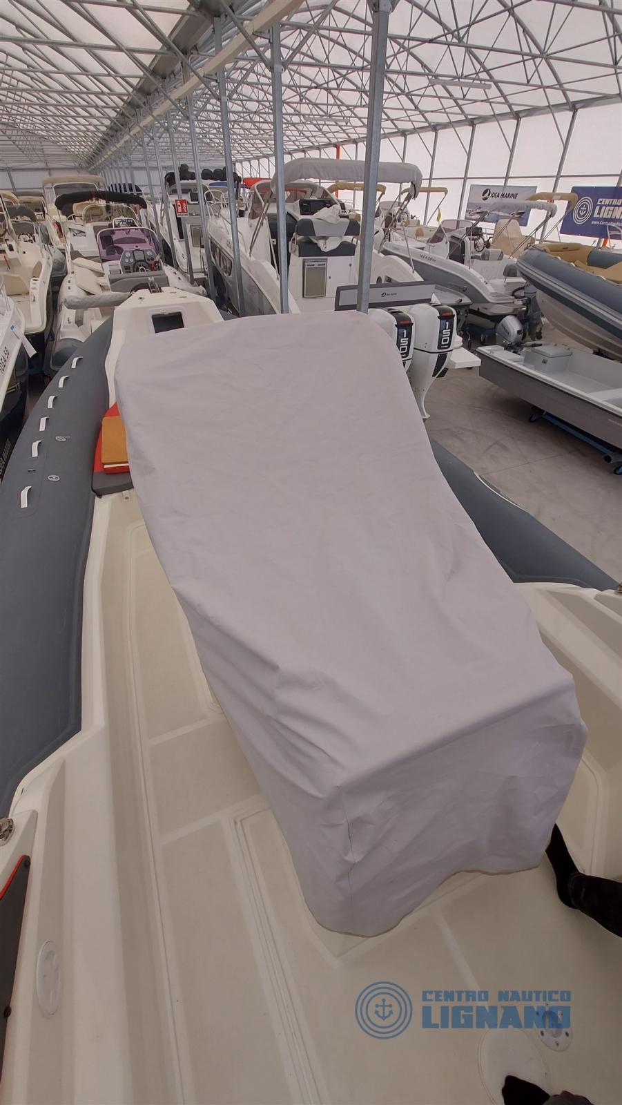Gommone Saver MG 820 perfetto, primo varo Maggio 2023, GPS nuovo 2024, motore Honda Marine BF250 V6 del 2023 con 125 ore circa, quasi 40 nodi di massima, dimensioni 8,30 mt per 3,16mt, completo di rollbar in vetroresina, radio VHF Lowrance, impianto stereo, bussola, timoneria idraulica, presa 12V, telo copriconsole, serbatoio acqua 70lt con pompa doccia, serbatoio carburante 270lt, cuscineria completa tinta rossa (nuova), prendisole di prua, prendisole di poppa, console con locale interno (bagno opzionale) volante con timoneria idraulica, pannello utenze con fusibili, scaletta a mare, plancette con teak, lavello con rubinetto, pompa di sentina, bussola, tromba, luci regolamentari di navigazione, tavolo con supporto, staccabatterie, oblò apribile in console/locale, tubolari colore grigio, pagaia, comando a chiesuola, computer SVH85, elica acciaio inox, batterie nuove, impianto stereo. Carellabile da sgonfio. Troppo divertente! Centro Nautico Lignano agenzia informazioni 0431 53363.