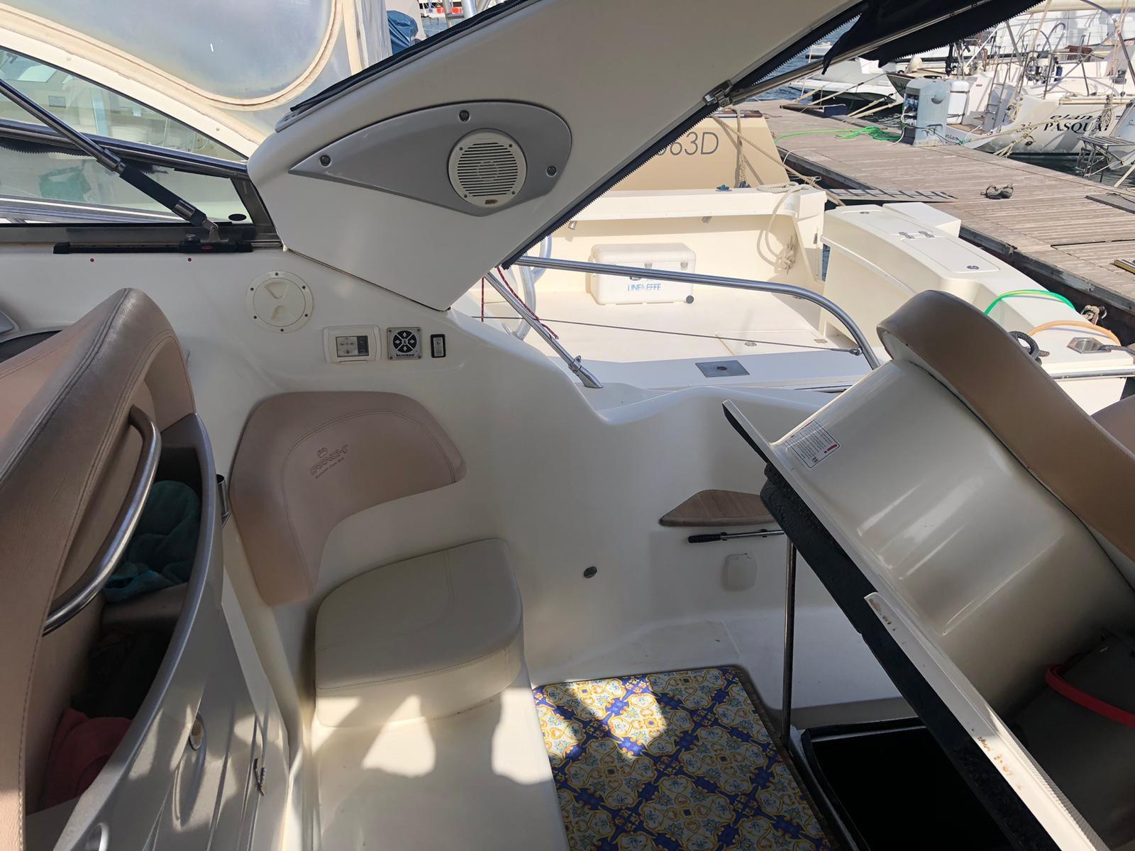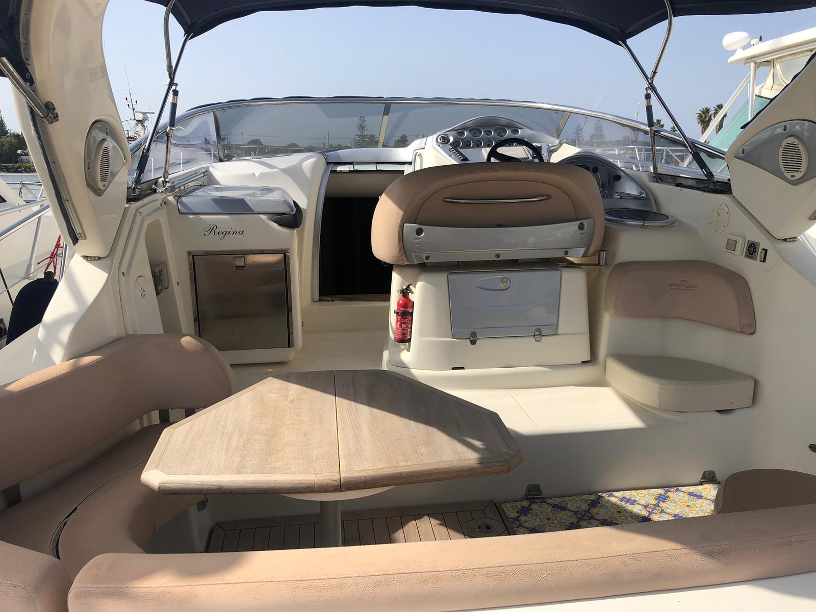 Allarme motore, Autoclave, 4 Batterie (2 motori + 2 servizi), Passerella (Besenzoni), Piattaforma, 2 Pompa di sentina elettrica, 2 Pompa di sentina manuale, Pozzetto Teak, Rollbar, Salpa Ancore Elettrico.