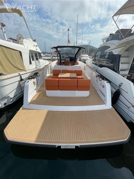 Allarme motore, Allarme sentina, Ancora (e catena), Autoclave, Camminamenti laterali in teak (teak sintetico), Doccia esterna, Luci di cortesia (a led sul ponte e nei walkaround), Piattaforma (di poppa in teak sintetico), Pompa di sentina automatica, Pozzetto Teak (in teak sisntetico), Salpa Ancore Elettrico, Scaletta da bagno, Tavolo pozzetto (elettrico con cuscini per il top per trasformazione prendisole), T-Top.