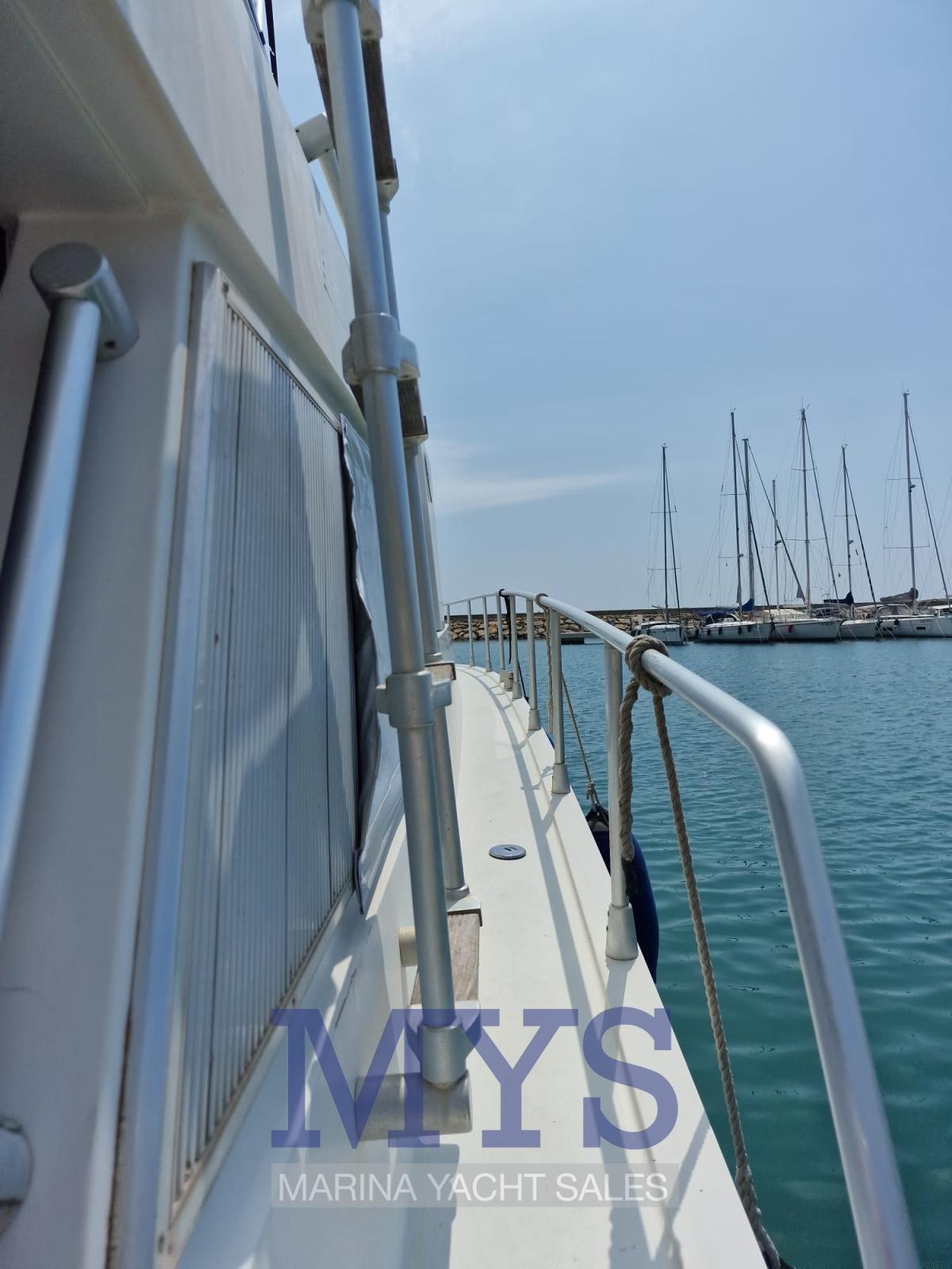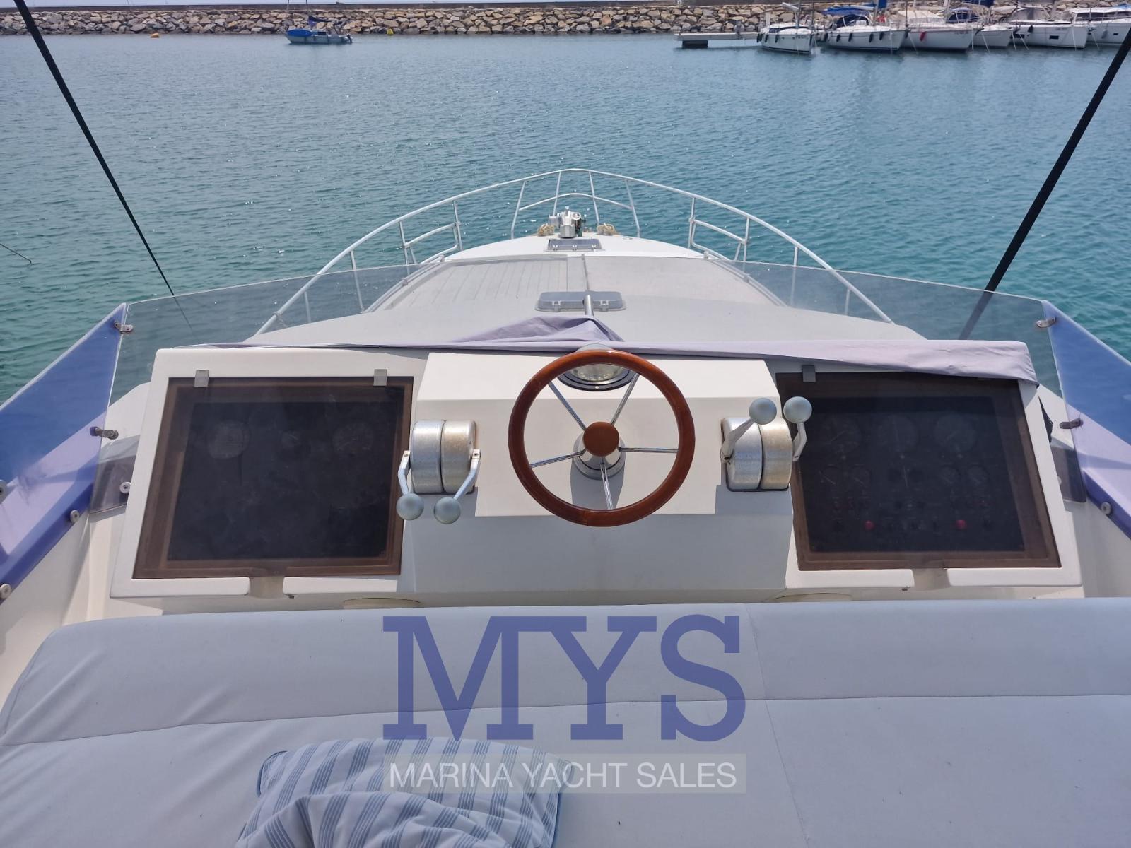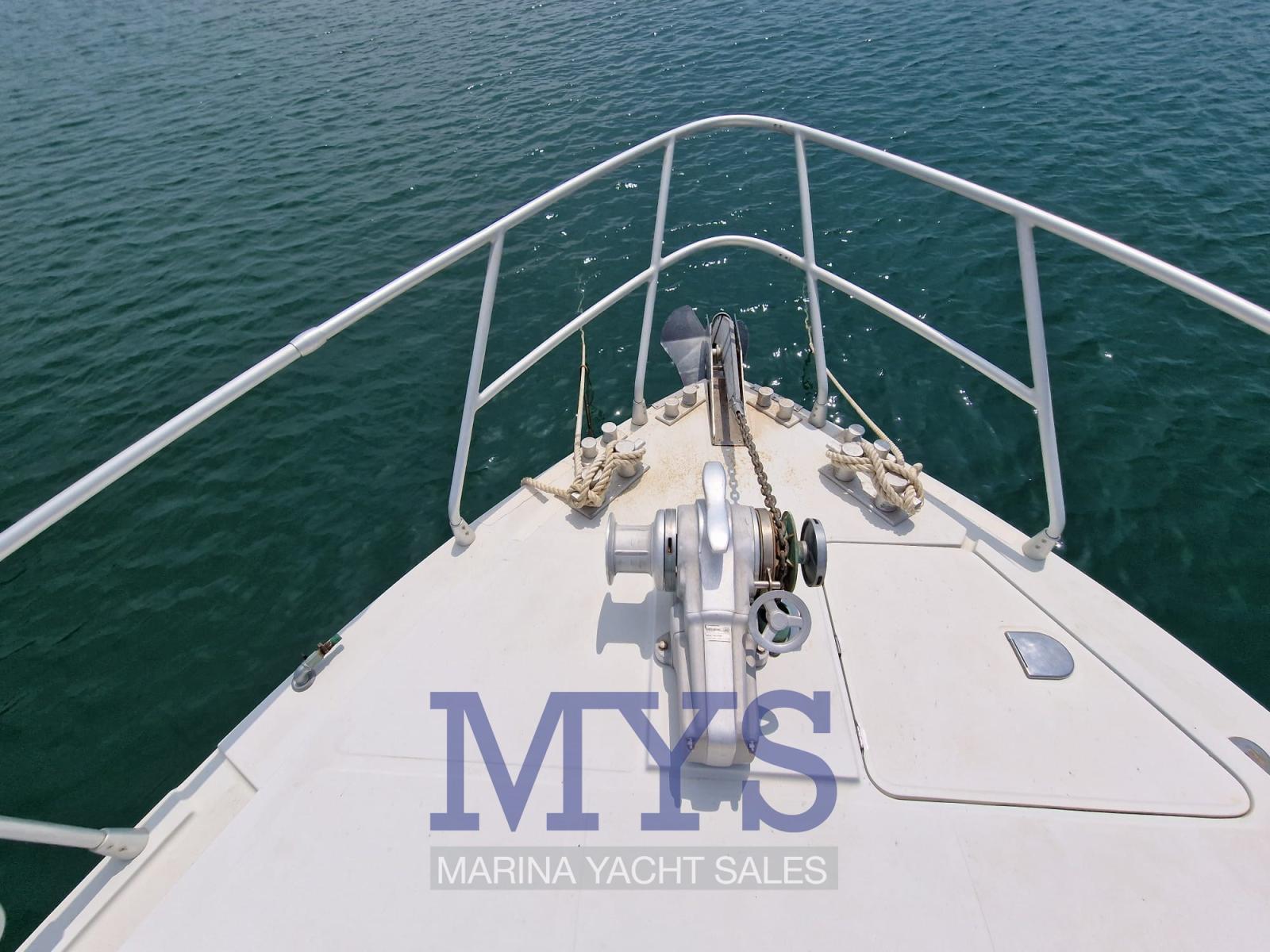 Allarme motore, Allarme sentina, Asse di rispetto, Autoclave, 6 Batterie, Doccia esterna, Doppia timoneria, Flap idraulici, Gruette per tender, Impianto antincendio, Indicatori Flaps, Passerella (Manuale), Piattaforma, Pompa di sentina automatica, Pompa di sentina manuale, Porta ingresso, Pozzetto Teak, Presa 220V banchina, Rollbar, Salpa Ancore Elettrico, Scaletta da bagno, Tromba, Winch tonneggio di prua.
