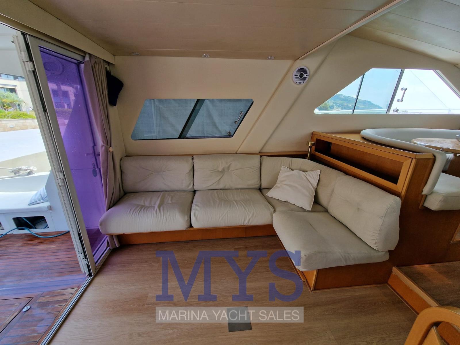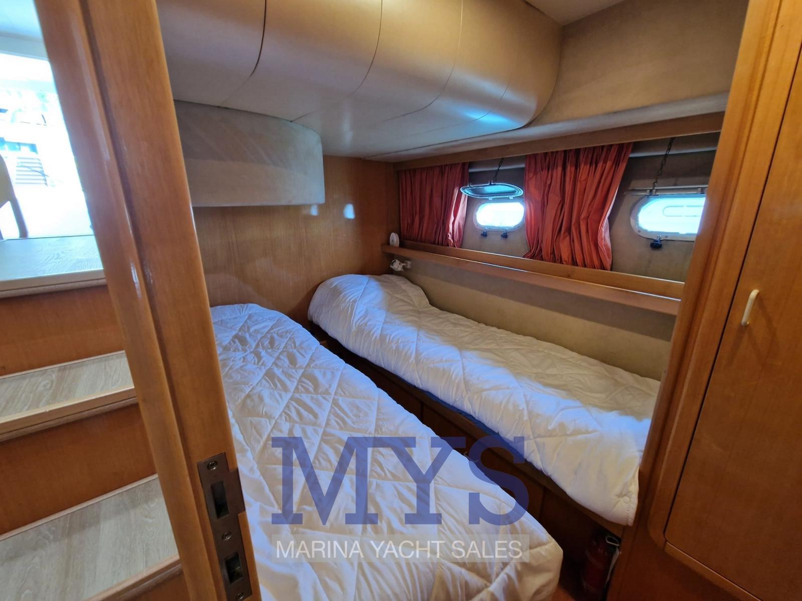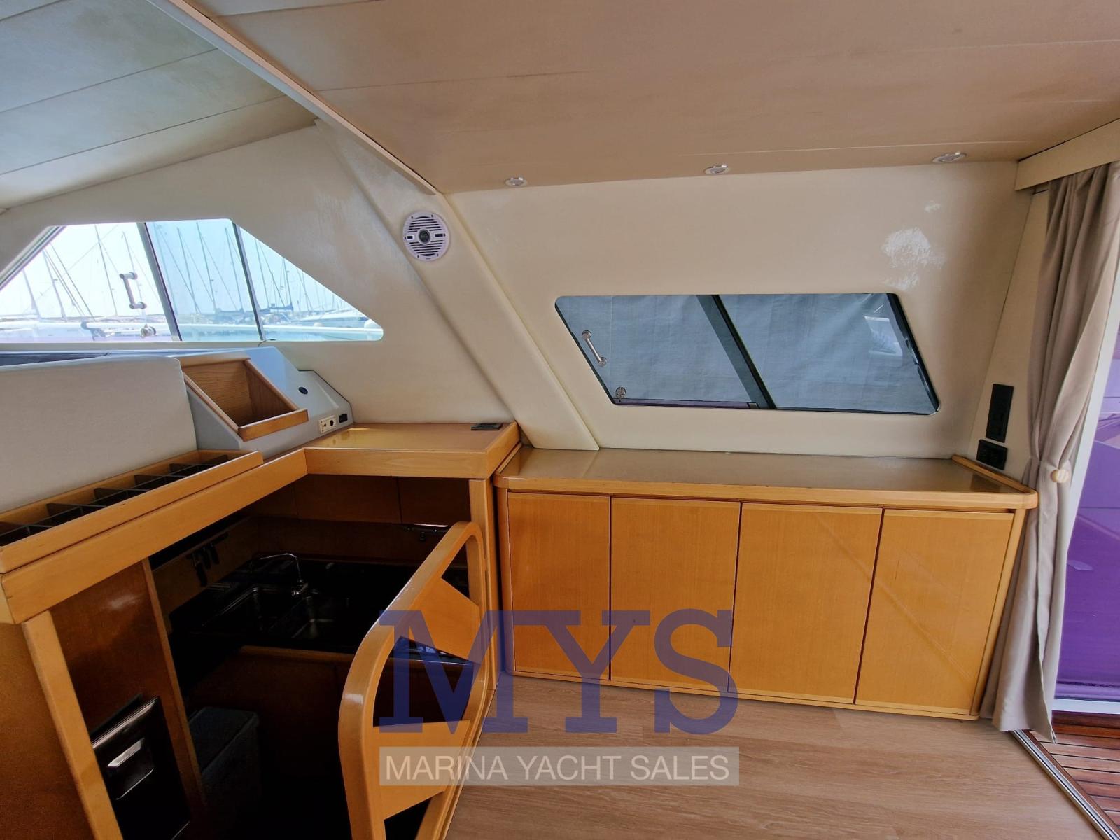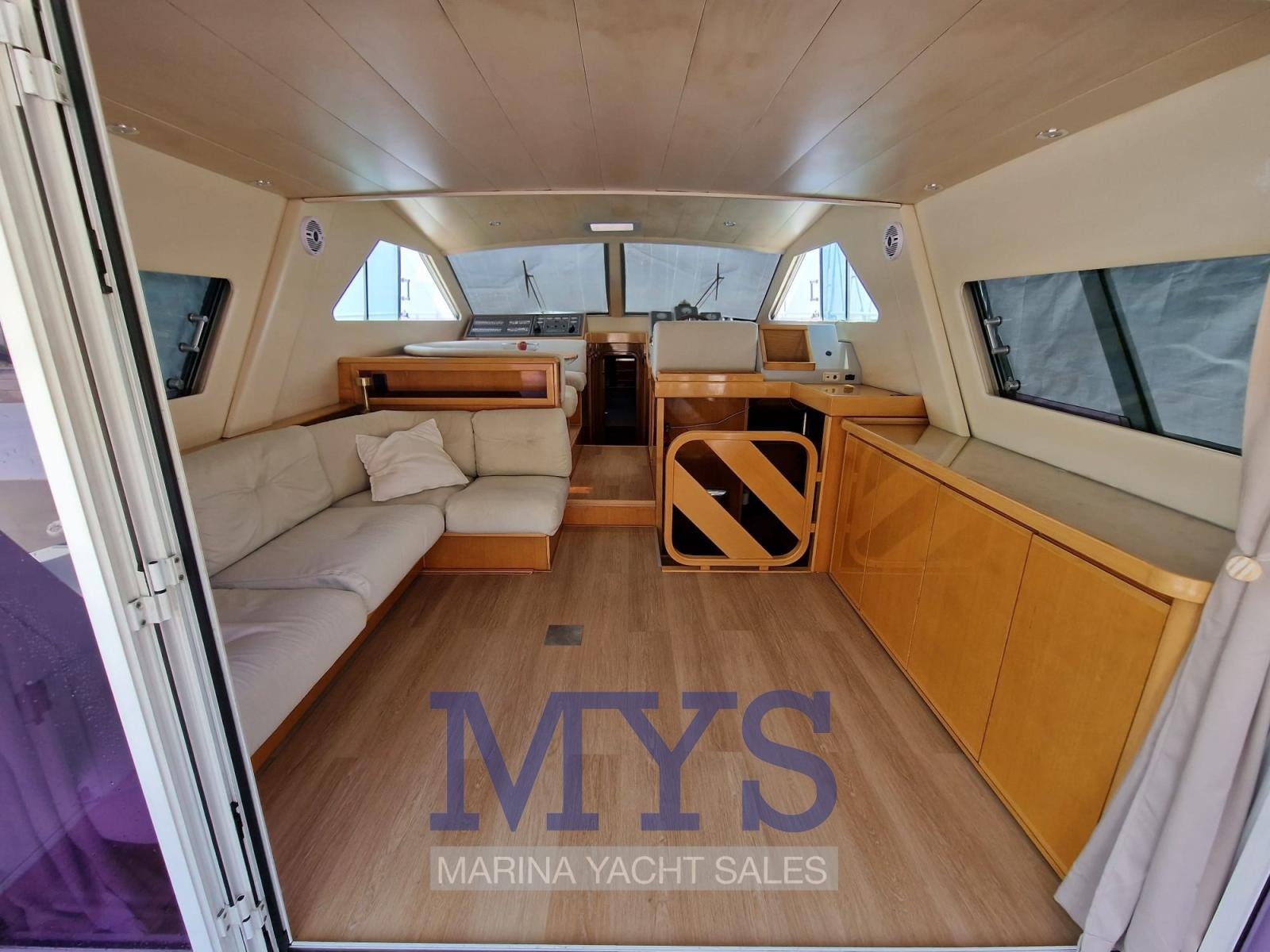 Allarme motore, Allarme sentina, Asse di rispetto, Autoclave, 6 Batterie, Doccia esterna, Doppia timoneria, Flap idraulici, Gruette per tender, Impianto antincendio, Indicatori Flaps, Passerella (Manuale), Piattaforma, Pompa di sentina automatica, Pompa di sentina manuale, Porta ingresso, Pozzetto Teak, Presa 220V banchina, Rollbar, Salpa Ancore Elettrico, Scaletta da bagno, Tromba, Winch tonneggio di prua.