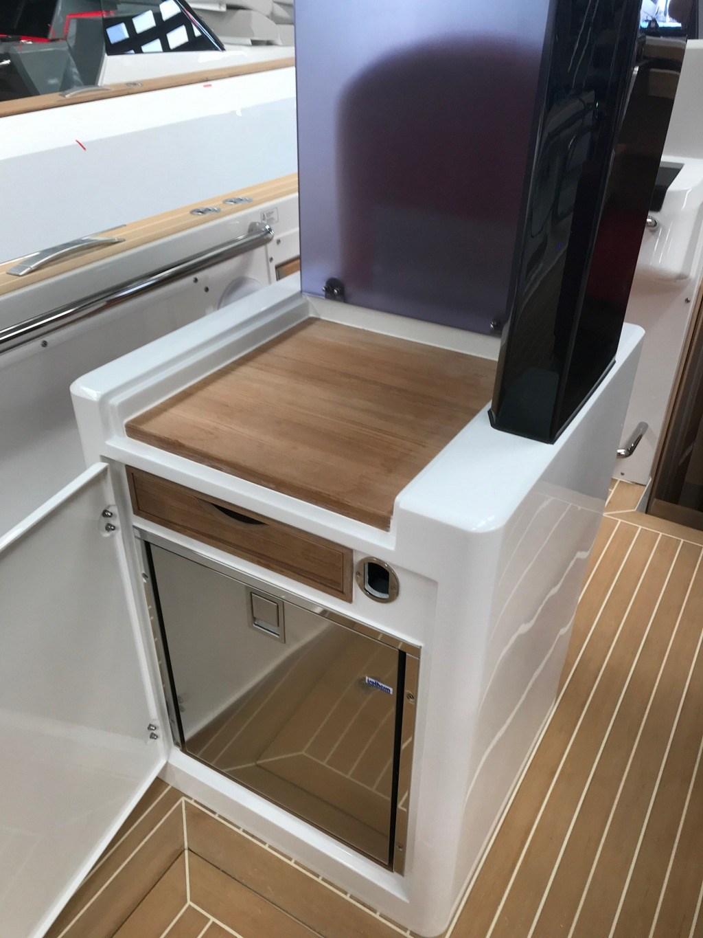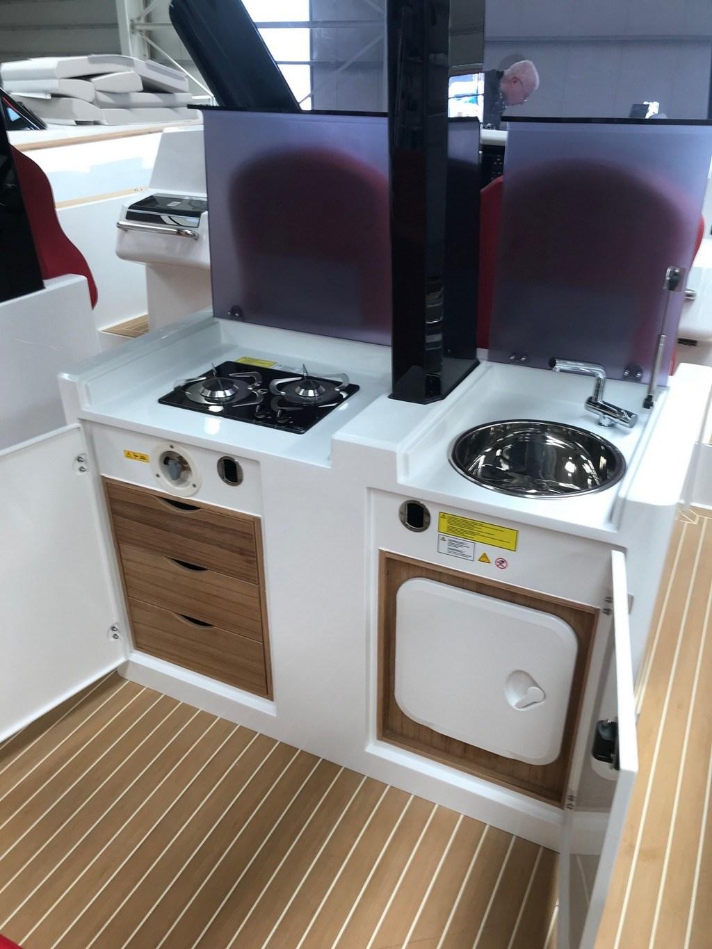 Cucina (Exterior - under TTOP), 3 Frigorifero esterno (Std + 2 drawers under cockipt bench), Piastra elettrica (Vitroceramic).