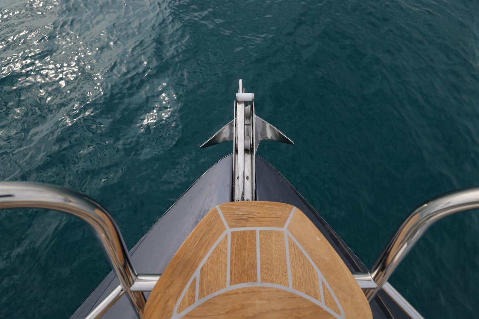 Ancora (Bruce), 4 Batterie (n.2 batterie 140 Ah per i servizi e n.2 batterie 140 Ah per i motori), Hard top (con tetto apribile scoreevole in vetro), Piattaforma (di poppa in teak), 3 Pompa di sentina automatica, Pozzetto Teak, Presa 220V banchina, Salpa Ancore Elettrico, Scaletta da bagno (pieghevole), Tavolo pozzetto.