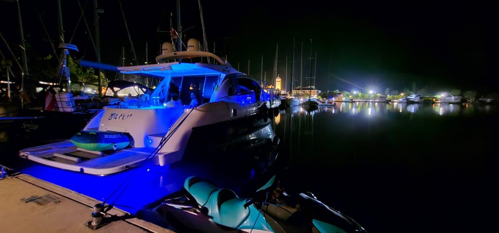 2 Allarme motore, Allarme sentina, Apertura Vano Motore Elettrica (sala macchine ,locale tecnico , locale stiva tutti alzabili elettricamente), Autoclave, Batterie (nuove 2022), Colorazione speciale (blu), Doccia esterna, 2 Flap idraulici, Hard top (con tettuccio apribile), Impianto antincendio, Indicatori Flaps, Luci di cortesia, Luci subacquee, 2 Pannelli Solari, Passerella (a scomparsa), Piattaforma (tenderlift), Pompa di sentina automatica, Porta ingresso, Pozzetto Teak, Presa 220V banchina, Presa acqua banchina, Raddrizzatore, Salpa Ancore Elettrico, Scaletta da bagno, Tavolo pozzetto (abbattibile), Tavolo Salone Abbattibile (12 persone), Tromba, T-Top, Winch tonneggio di prua.