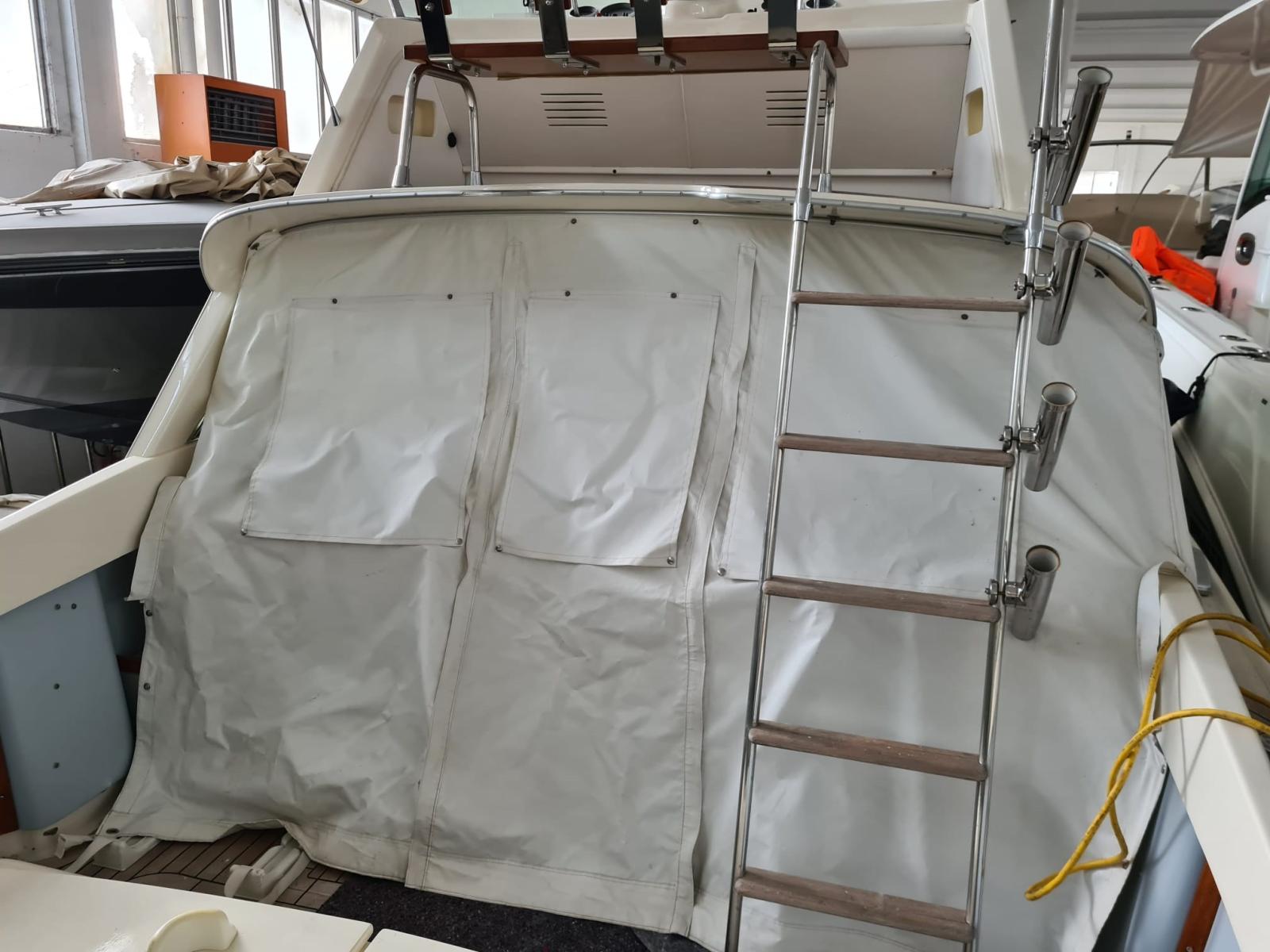 Copriscafo (chiusura totale e parziale), Cuscineria completa (in ottime condizioni), Cuscineria di poppa, Cuscineria fly, Cuscineria Pozzetto, Telo Copertura Fly.