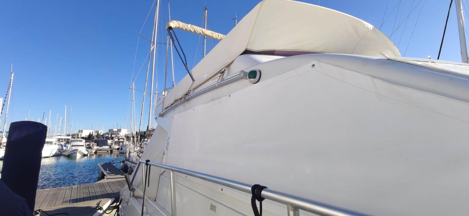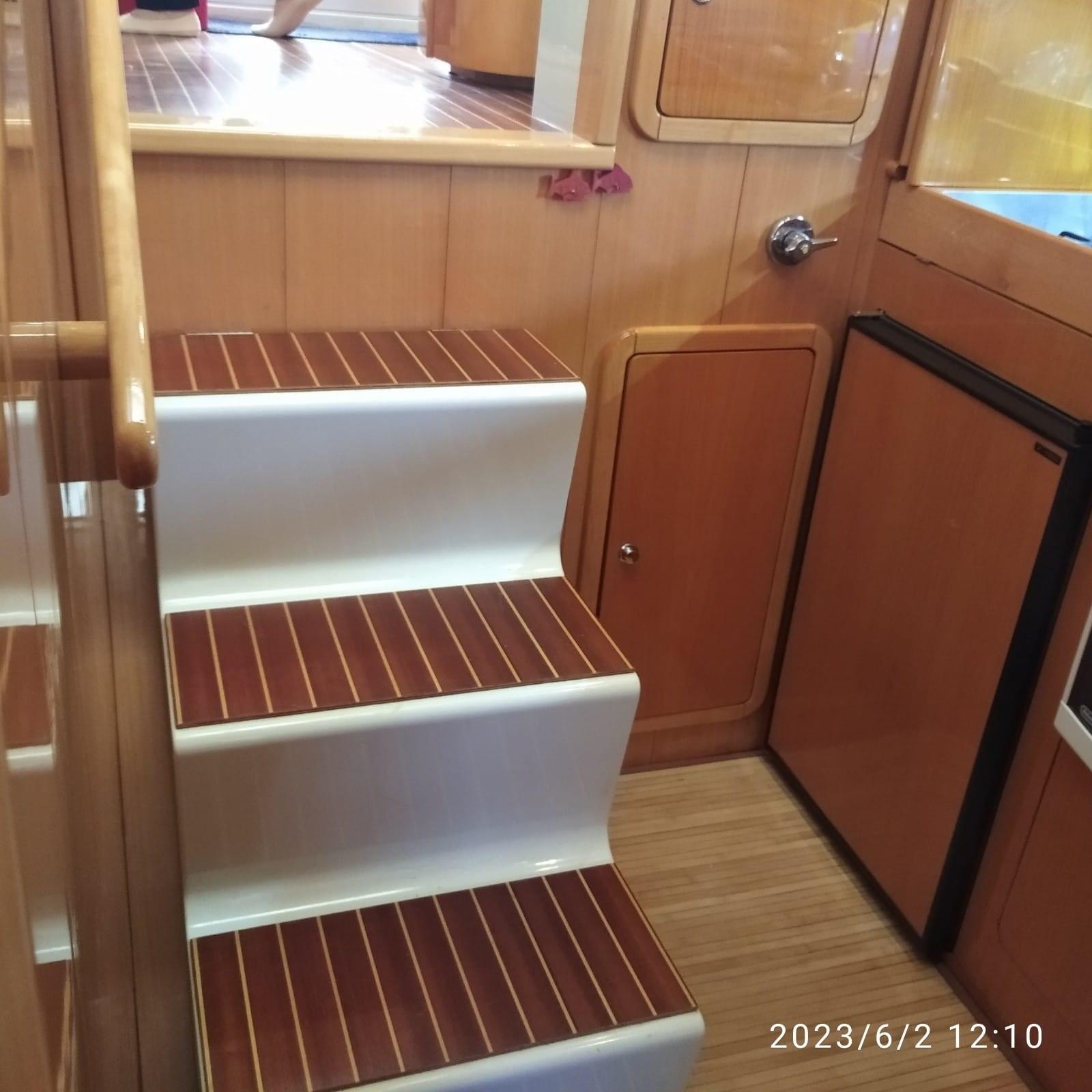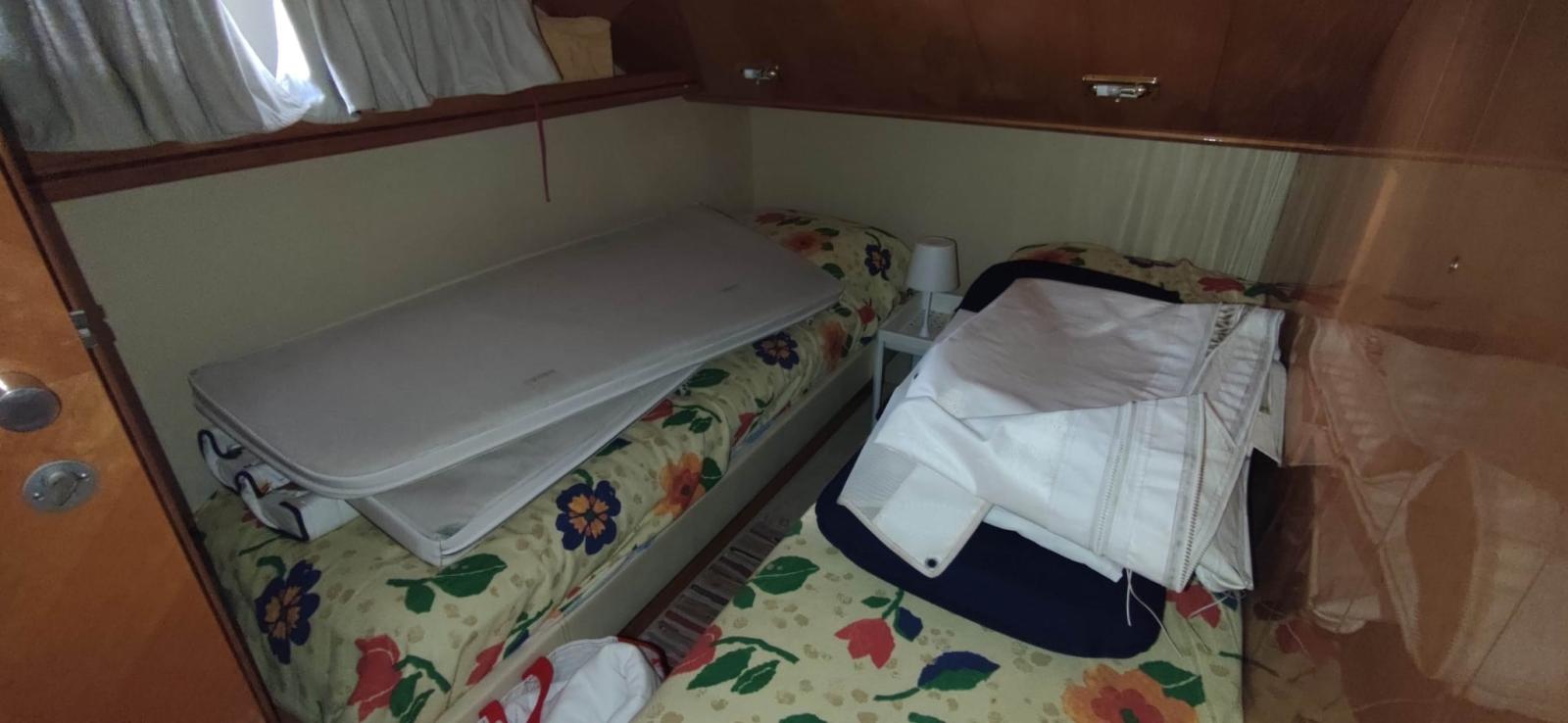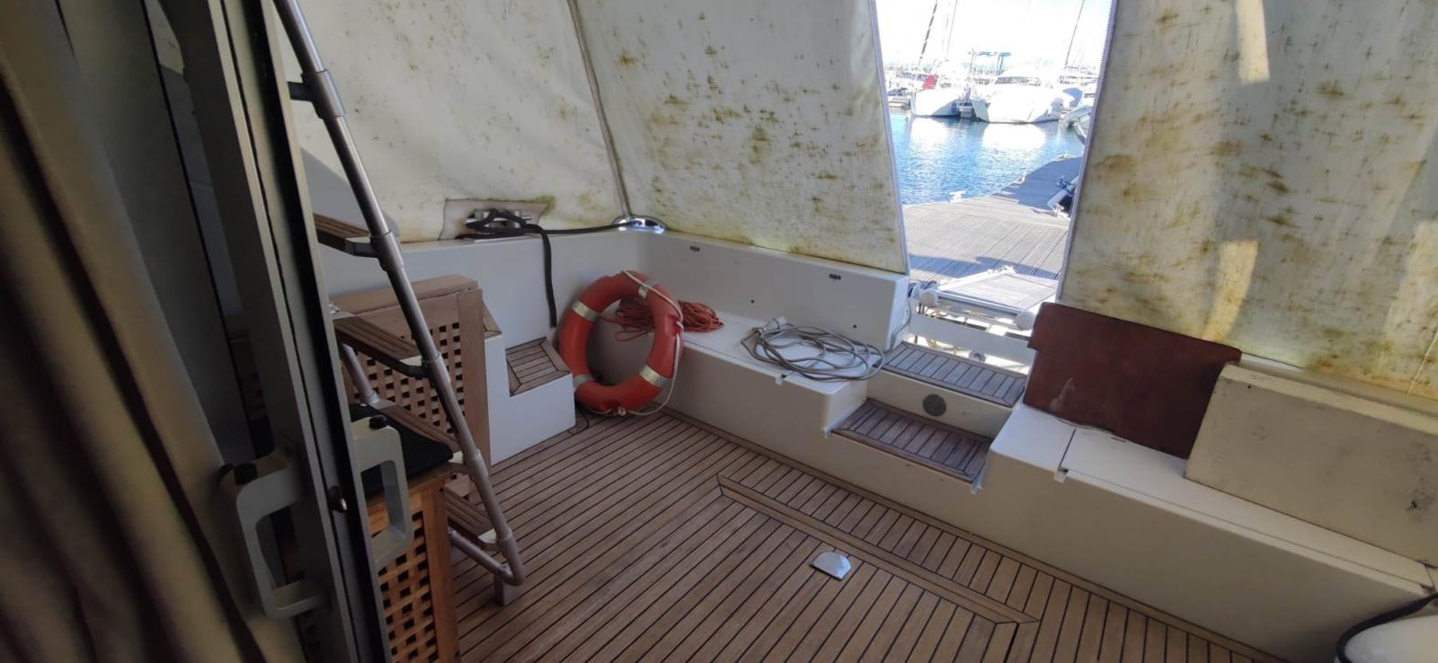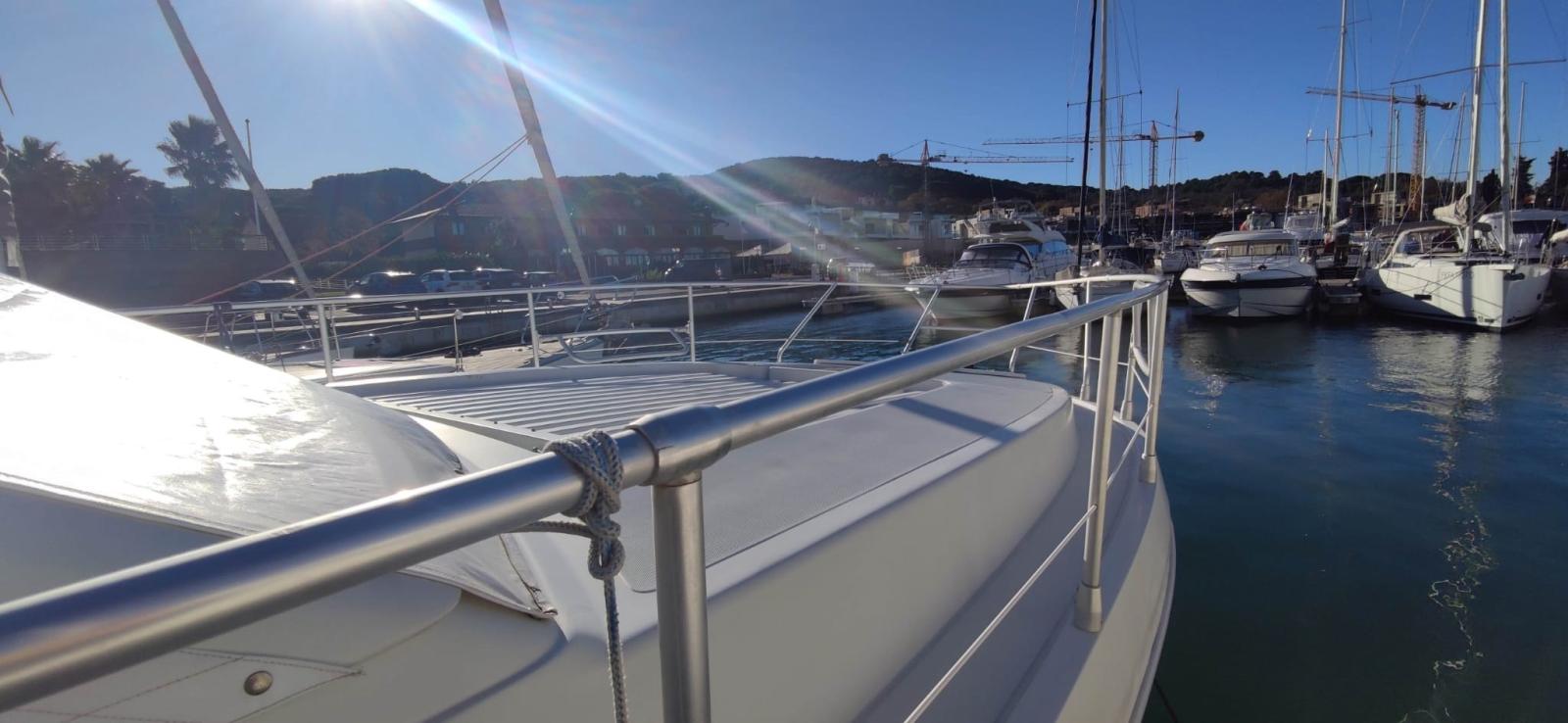 Allarme motore, Autoclave, 4 Batterie, Doccia esterna, Doppia timoneria, 2 Elica di rispetto, Flap idraulici, Indicatori Flaps, Luci di cortesia, Passerella (idraulica Besenzoni), Piattaforma, Pompa di sentina manuale, Porta ingresso, Pozzetto Teak, Presa 220V banchina, Salpa Ancore Elettrico, Scaletta da bagno, Tromba.