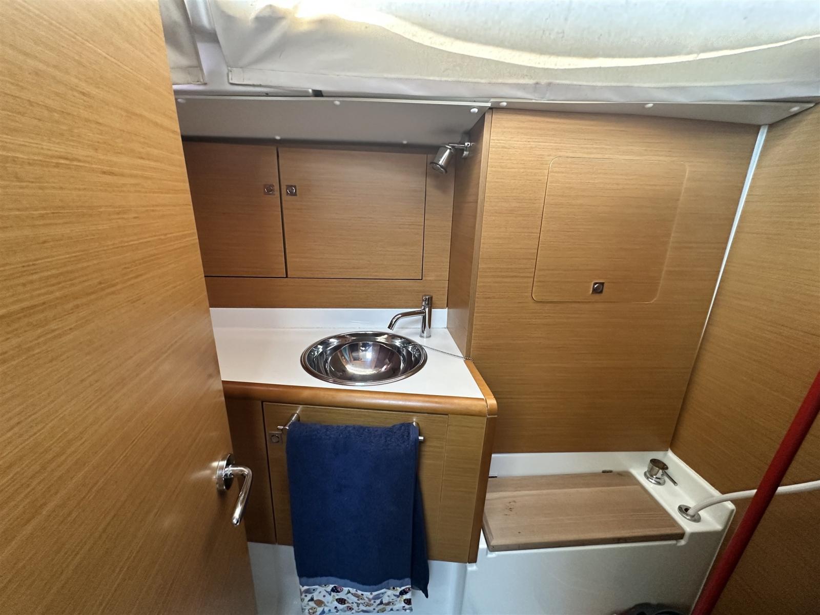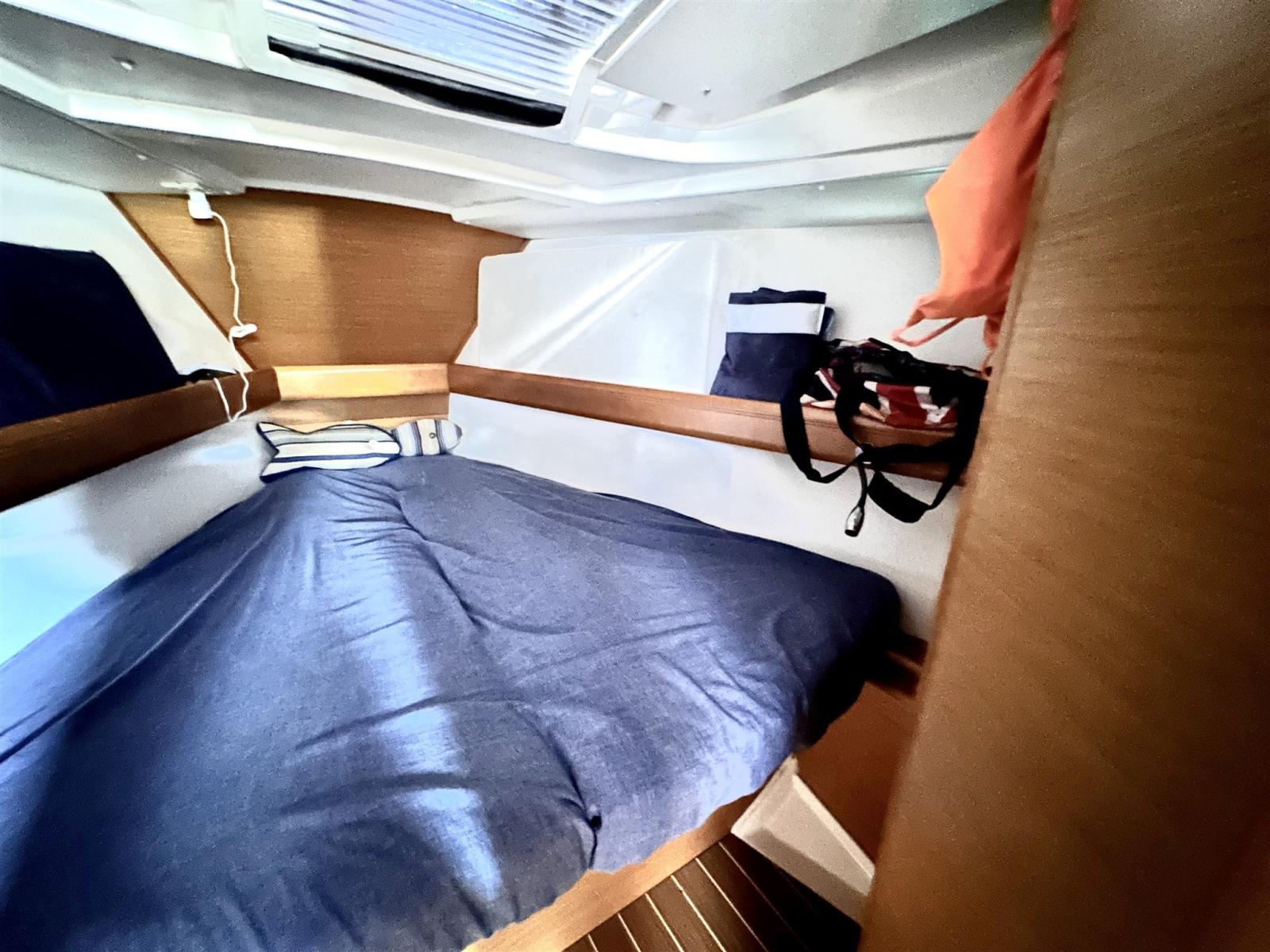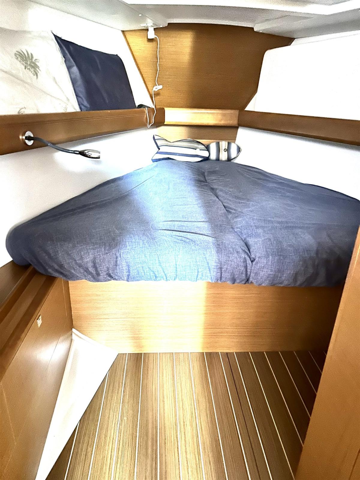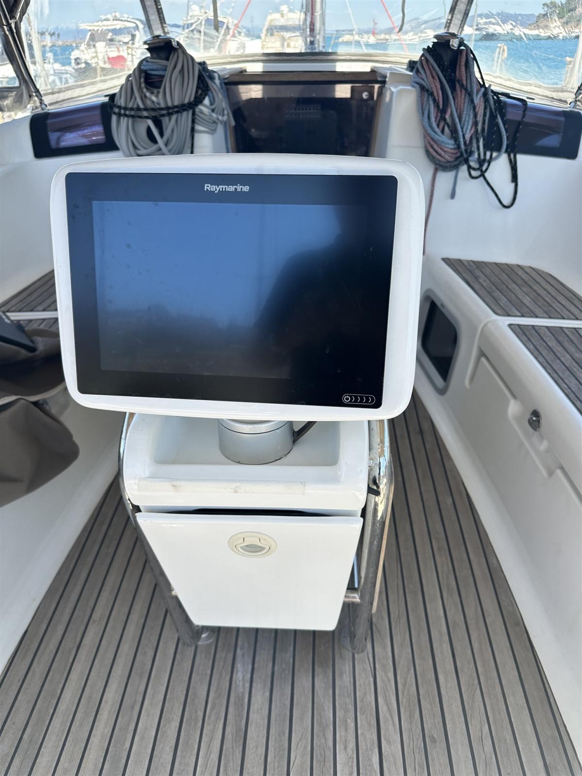 Pozzetto ampio con doppia timoneria. Tavolo da pozzetto integrato con ghiacciaia. Winch maggiorati per manovre in equipaggio ridotto. Plancetta di poppa abbattibile . Passavanti ampi e comodi