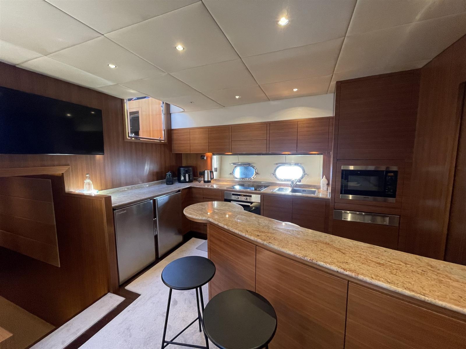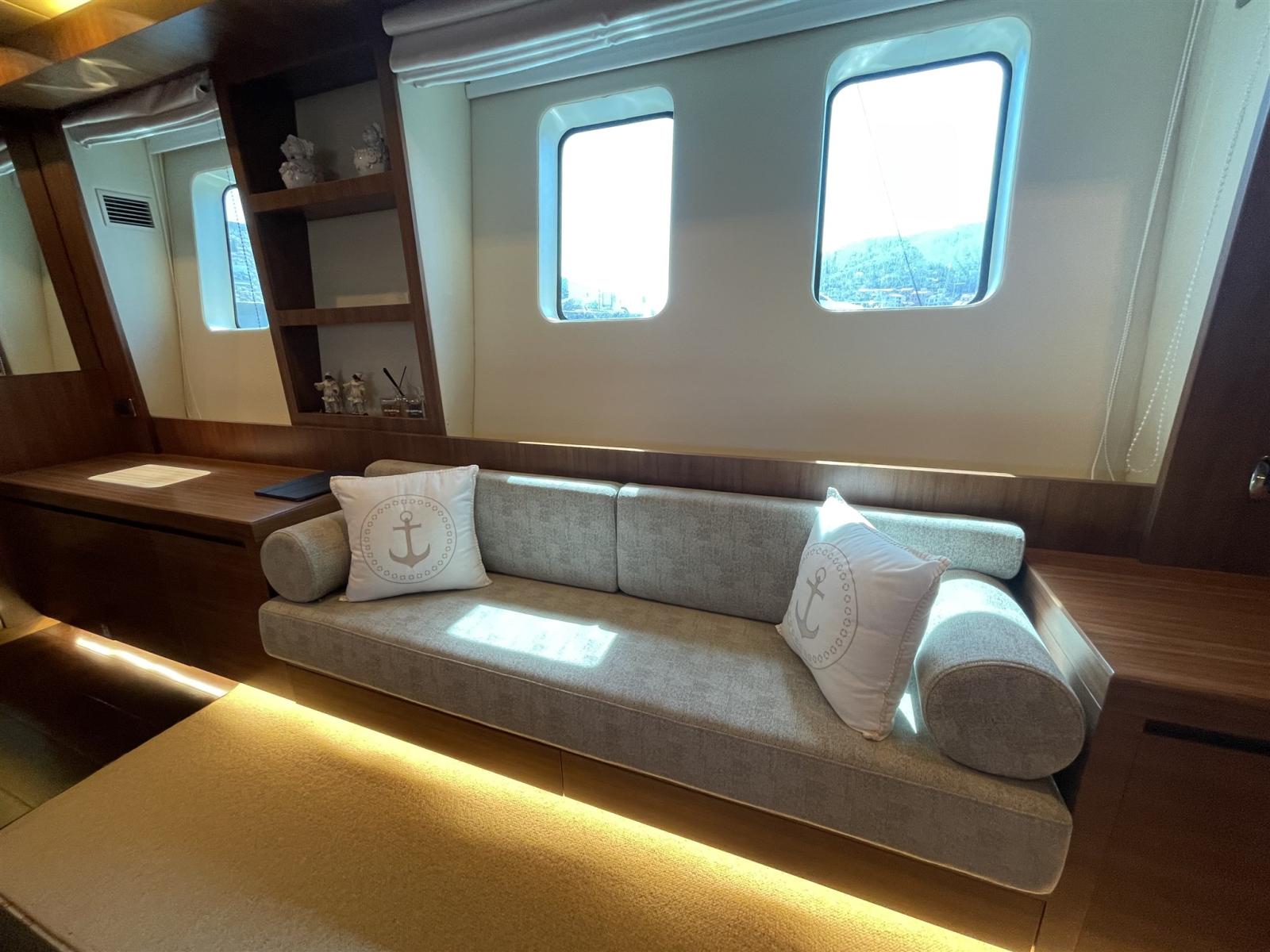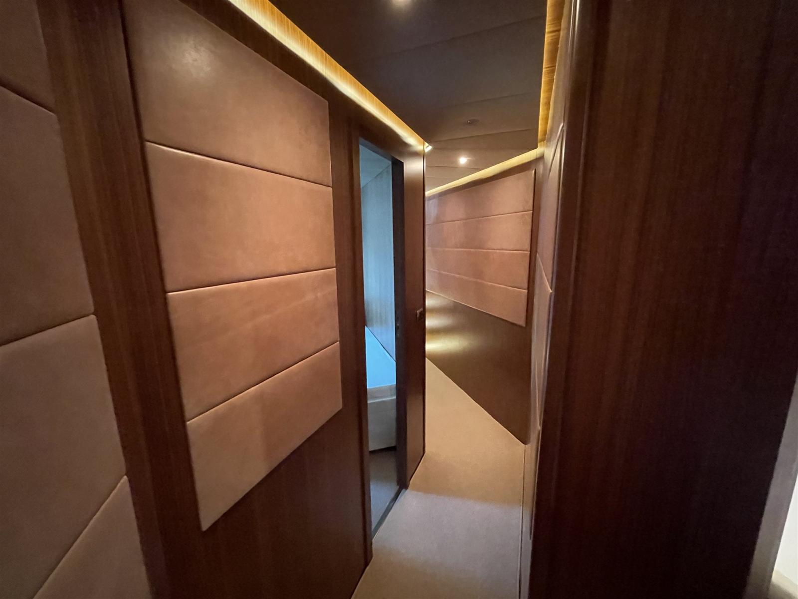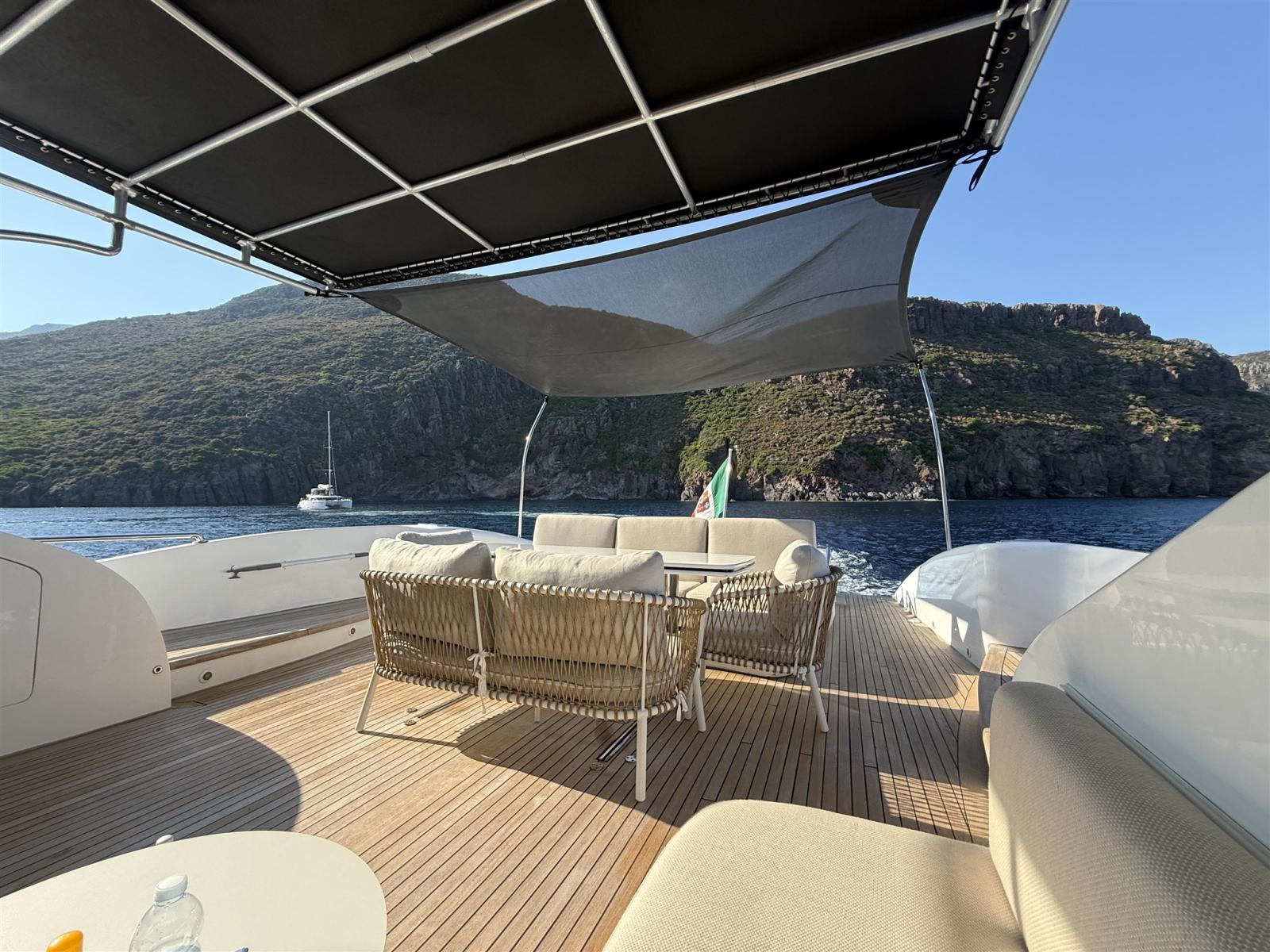 Allarme fumo/gas, Allarme motore, Allarme sentina, Alternatore, Bocche di Lupa, Elica di poppa - stern thruster (potenziate 48 V), Elica di prua - bow thruster (potenziate 48 V), Flap elettrici, Flap idraulici, Indicatori Flaps, Luci di cortesia, Luci subacquee, Pompa di sentina automatica, Pompa di sentina manuale, Ponte in teak, Porta ingresso, Porta laterale, Pozzetto Teak, Presa 220V banchina, Presa acqua banchina, Raddrizzatore, Salpa Ancore Elettrico, Tavolo pozzetto.