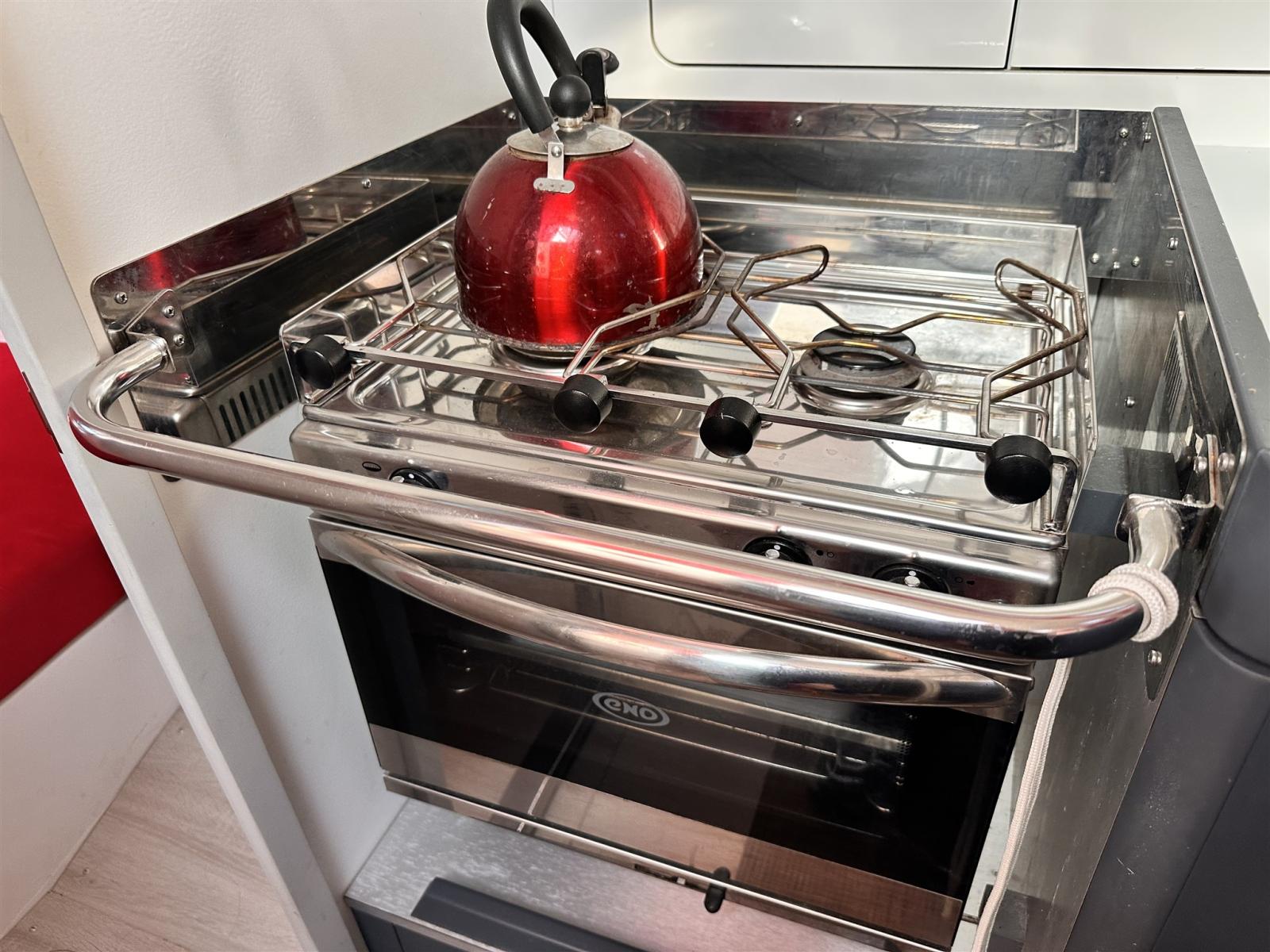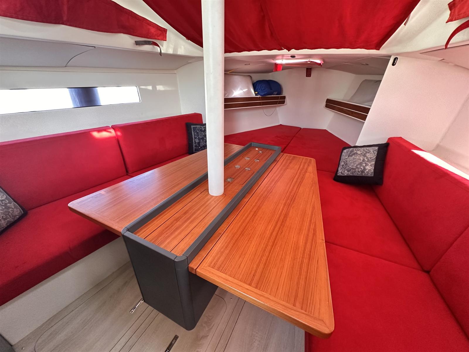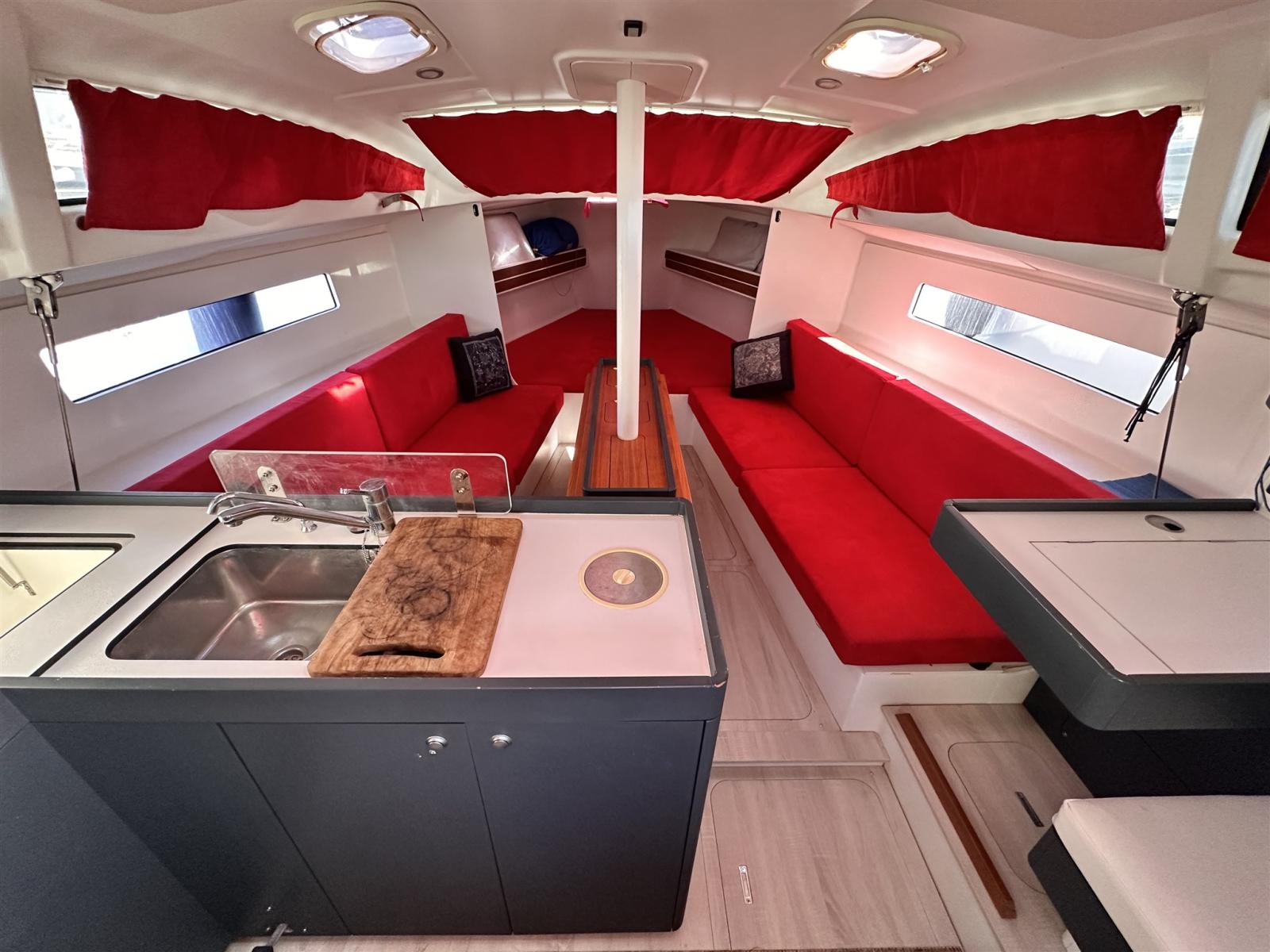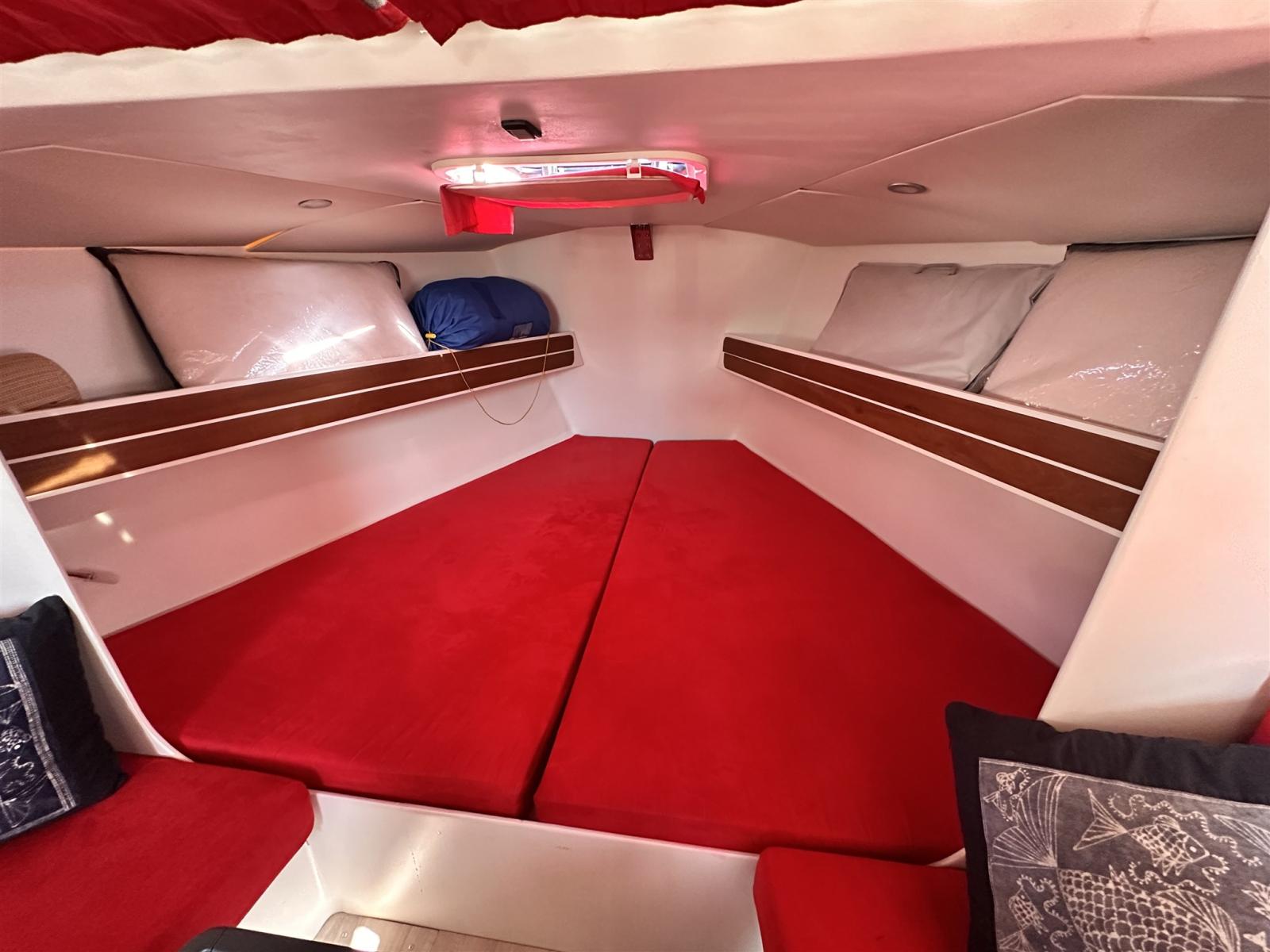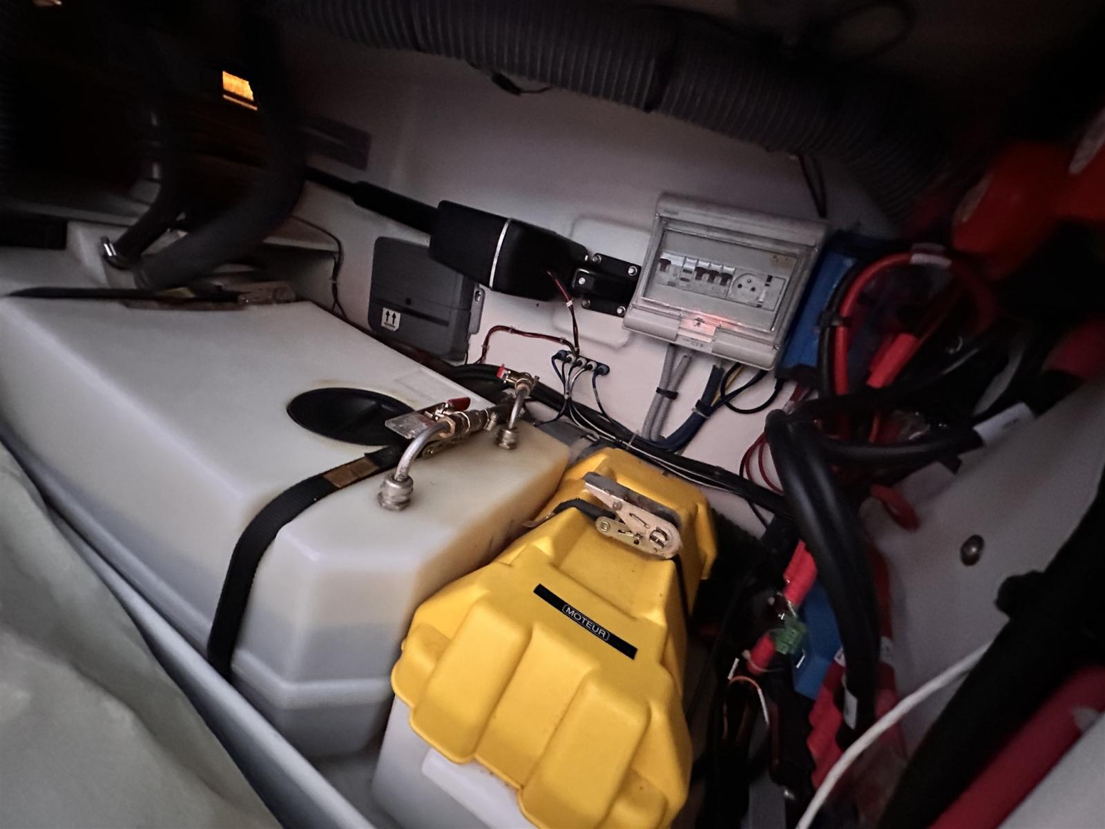 Boiler, Dissalatore (30 l Schenker), Impianto acque nere, Pavimento interno in legno, Prese interne 12v, Prese interne 220v, Serbatoio Acque Nere, WC marino elettrico.