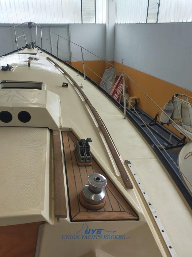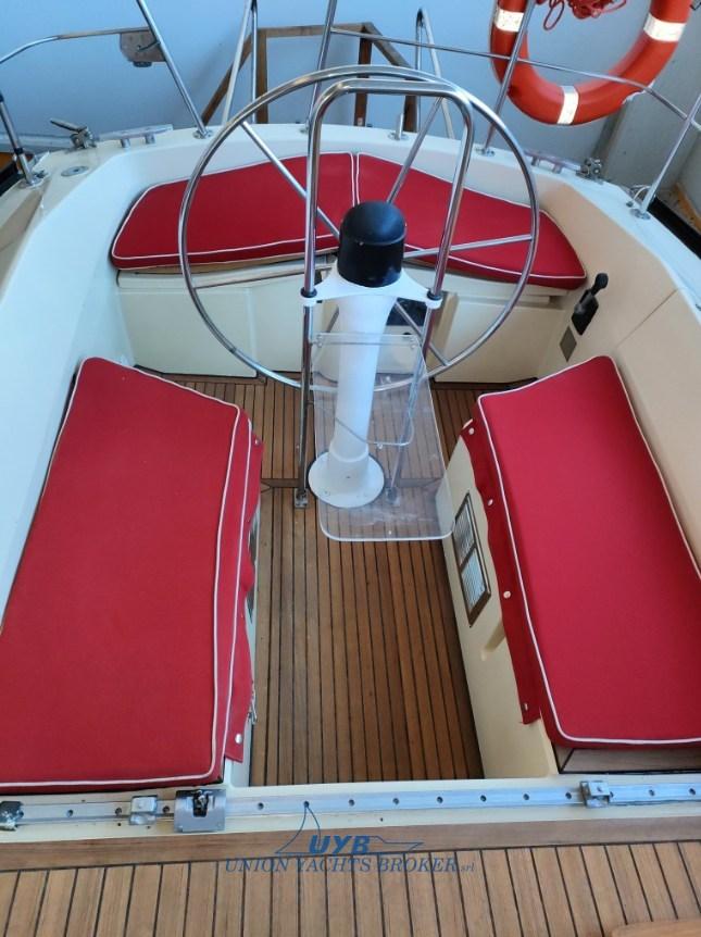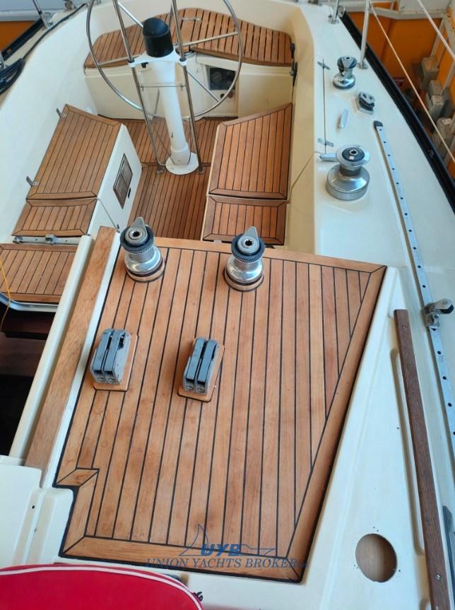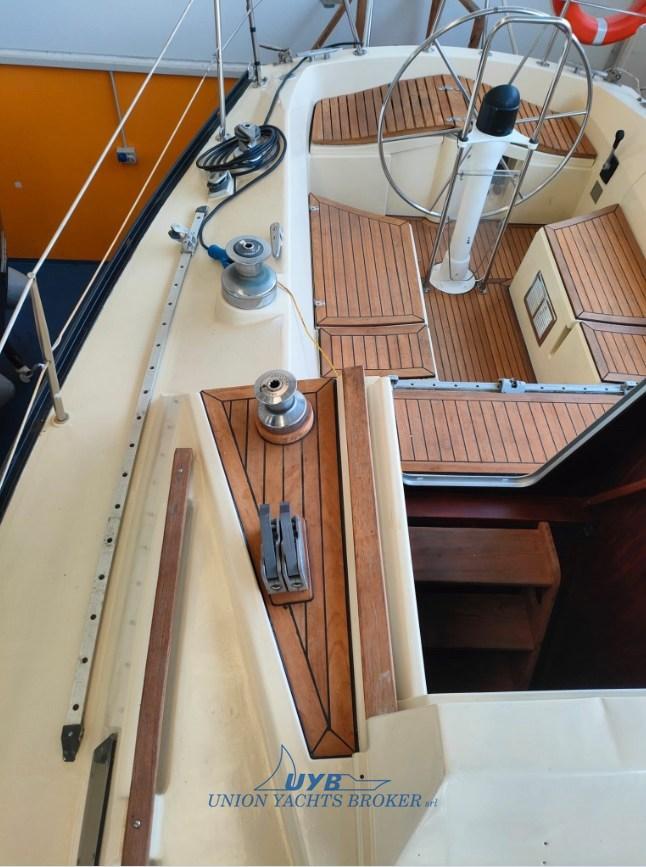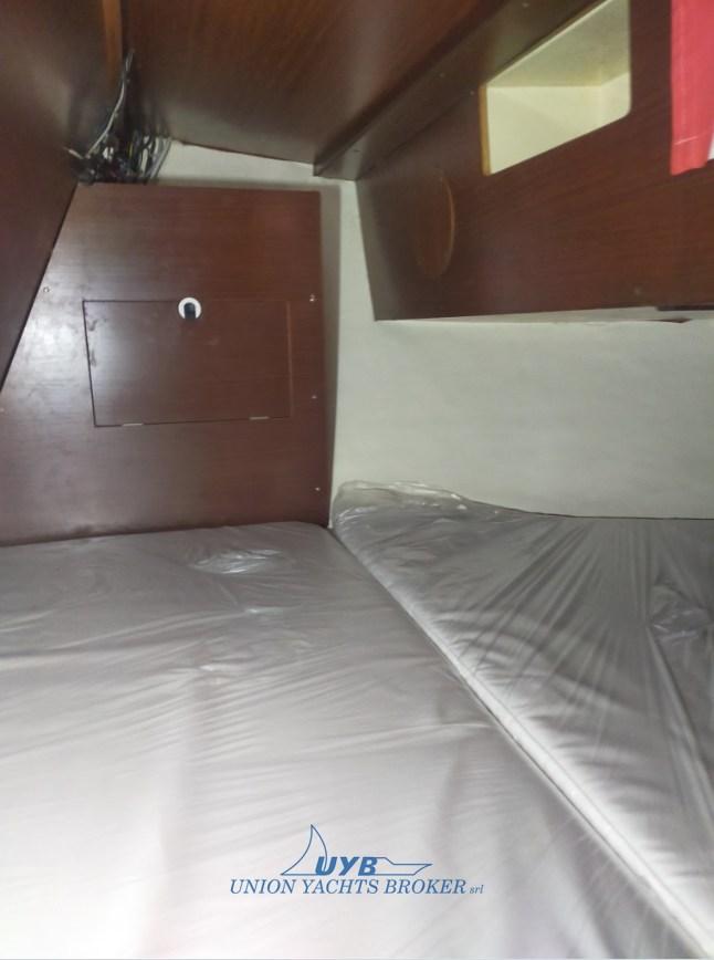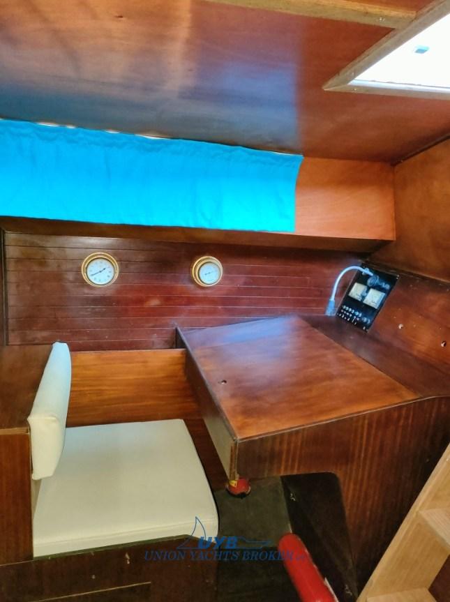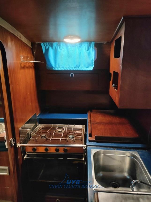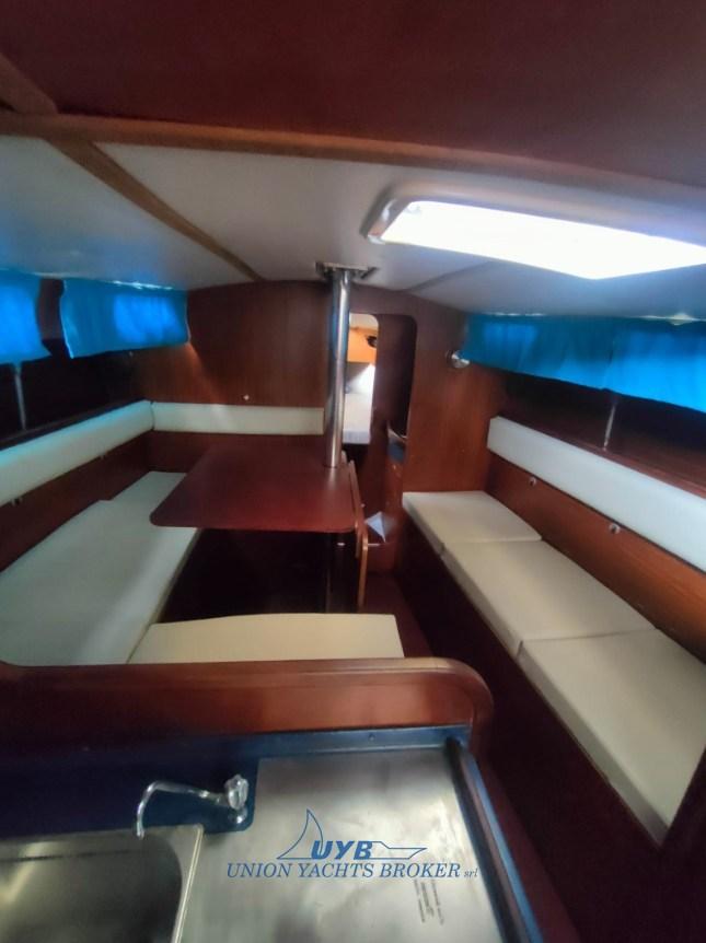 Interni con due cabine, dinette trasformabile, cucina contrapposta al tavolo da carteggio e una toilette verso prua. Particolarmente veloce in bolina.