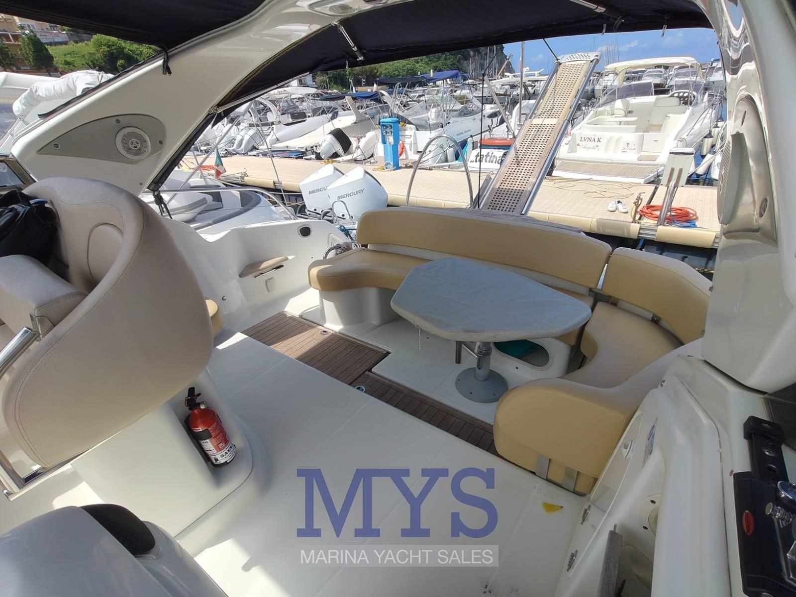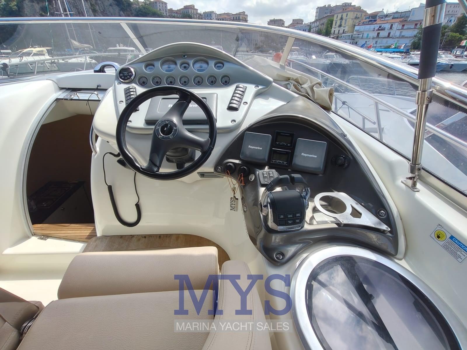 Allarme motore, Allarme sentina, Alternatore, Apertura Vano Motore Elettrica, Autoclave, Doccia esterna, Flap elettrici, Indicatori Flaps, Lavandino nel Pozzetto, Luci di cortesia, Passerella (idraulica), Piattaforma, Pompa di sentina automatica, Porta ingresso, Pozzetto Teak, Presa 220V banchina, Presa acqua banchina, Rollbar, Salpa Ancore Elettrico, Scaletta da bagno, Tavolo pozzetto, Tromba, T-Top.