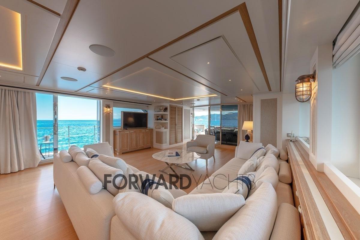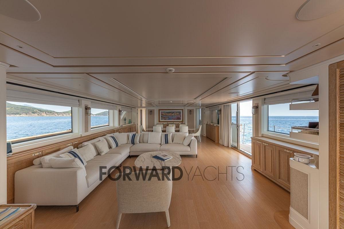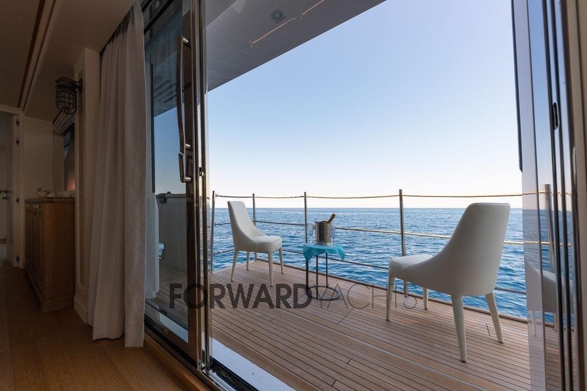È lo yacht perfetto per socializzare e divertirsi con la famiglia e gli amici. Il salone principale offre balconi a due ante a babordo e a dritta, offrendo agli ospiti una vista spettacolare sul paesaggio circostante. Questo San Lorenzo SD112 può ospitare fino a 10 ospiti in 5 cabine: 1 cabina armatoriale, 1 cabina VIP, 1 cabina matrimoniale e 2 cabine doppie. Può anche ospitare fino a 6 membri dell'equipaggio. Alimentato da due motori MTU da 1224 CV ciascuno. La sua velocità massima è di 17 nodi, con una velocità di crociera è di 11 nodi e un'autonomia di ca. 2600 miglia nautiche.
