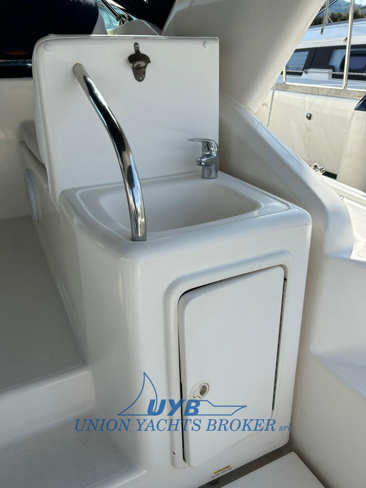 Allarme motore, Allarme sentina, Autoclave, 5 Batterie, Doccia esterna, Passerella (idraulica), Piattaforma, Pompa di sentina automatica, Porta ingresso, Presa 220V banchina, Presa acqua banchina, Rollbar, Salpa Ancore Elettrico, Scaletta da bagno, Tavolo pozzetto, Tromba.
