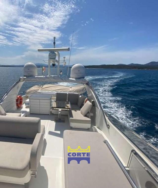 Allarme fumo/gas, Allarme motore, Allarme sentina, Autoclave, Bocche di Lupa, Camminamenti laterali in teak, Doccia esterna, Doppia timoneria, Flap idraulici, Gruette per tender su fly, Impianto antincendio, Luci di cortesia, Passerella (elettroidraulica a scomparsa), Piattaforma (poppa con carabottino in teak), Pompa di sentina automatica, Porta ingresso, 2 Porta laterale, Pozzetto Teak, Presa 220V banchina, Presa acqua banchina, Rollbar, Salpa Ancore Elettrico, Scaletta da bagno, Tavolo pozzetto, Tender, Tromba, Winch tonneggio di poppa, Winch tonneggio di prua.