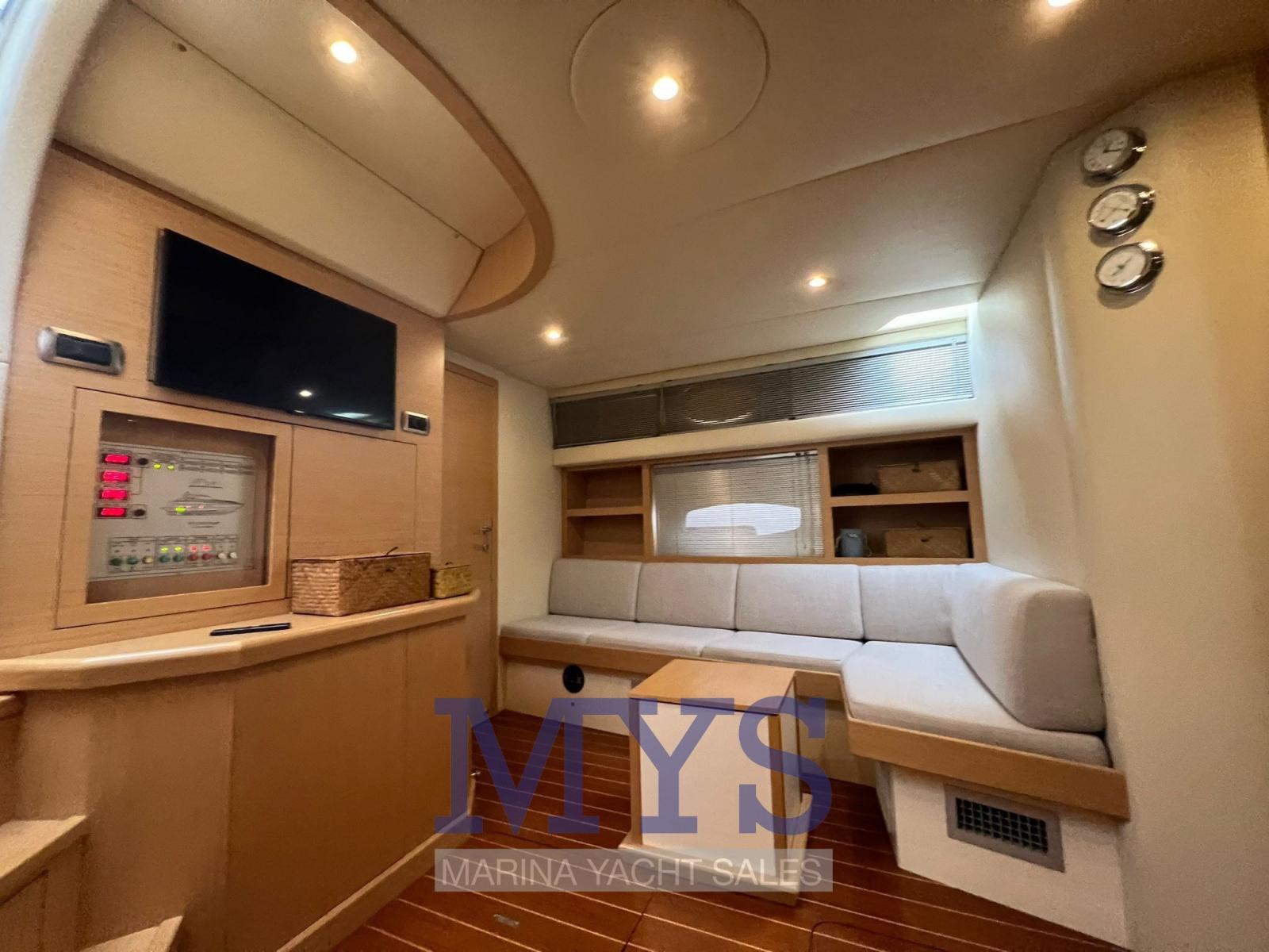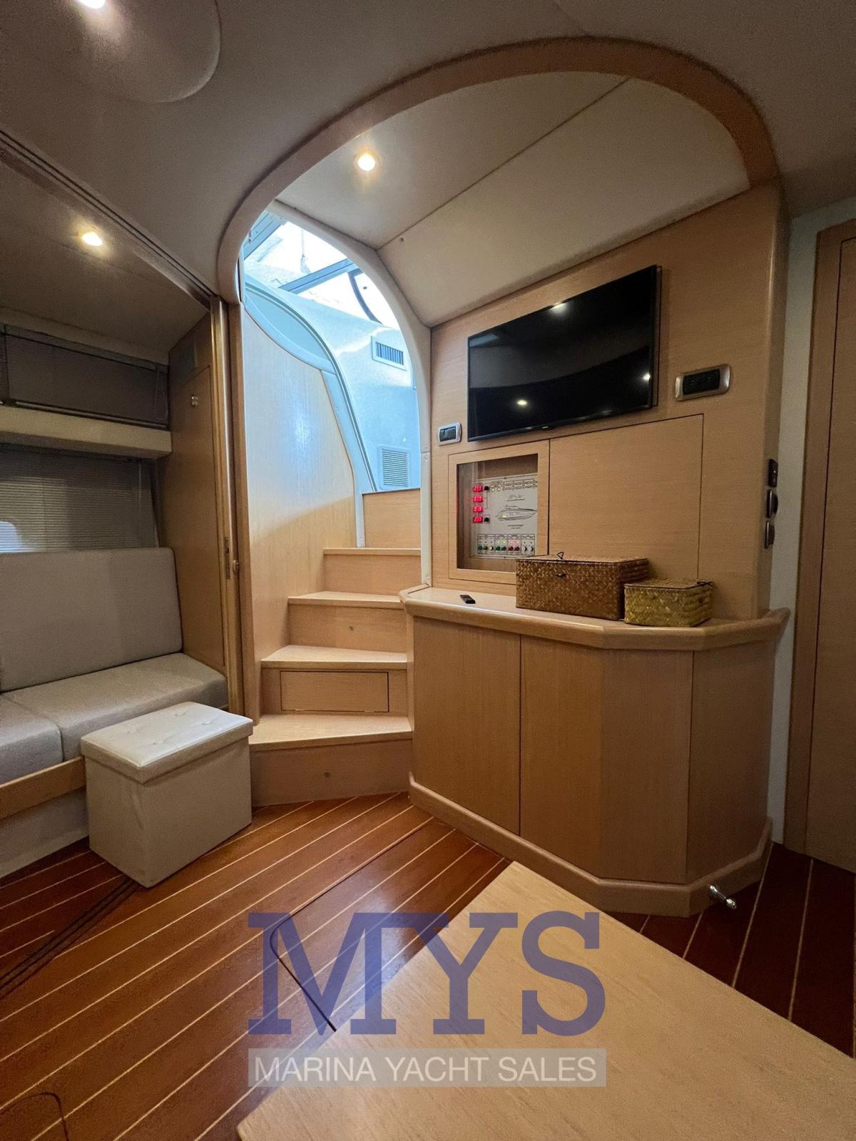 Allarme fumo/gas, Allarme motore, Allarme sentina, Ancora (80 mt catena), Apertura Vano Motore Elettrica, Autoclave, Autogonfiabile (2023), Batterie (Servizi 2023), Camminamenti laterali in teak, 2 Doccia esterna, Faro orientabile, Flap idraulici, Garage per tender, Hard top, Impianto antincendio, Indicatori Flaps, Lavandino nel Pozzetto, Luci di cortesia, Luci subacquee, Passerella (a scompasa), Piattaforma (Teak), Pompa di sentina automatica, Pompa di sentina manuale, Porta ingresso (in acciaio inox), Presa 220V banchina, Presa acqua banchina, Salpa Ancore Elettrico, Scaletta da bagno, Tender (Arimar), Tromba.