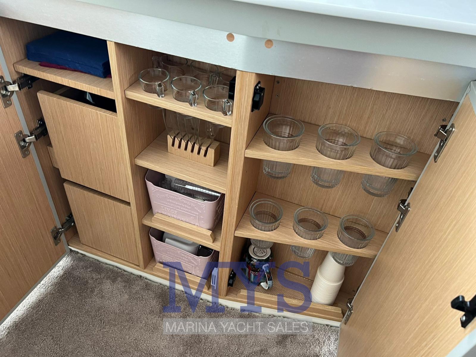2 Boiler, Impianto acque nere, Pavimento interno in legno, Prese interne 12v, Prese interne 220v, Serbatoio Acque Nere, 2 WC marino elettrico (Tecma).
