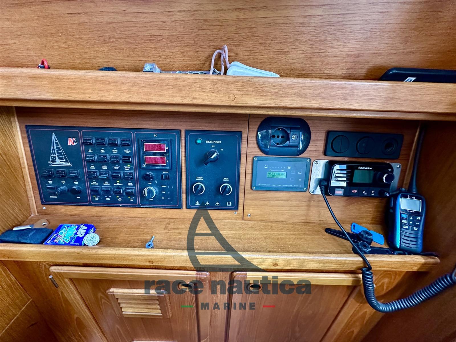 Allarme motore, Alternatore, Ancora (CON 80 MT DI CATENA IN ACCIAIO INOX DELL 8), Autoclave, 4 Batterie, Cavo corrente di banchina, Doccia esterna (c7f nel pozzetto), Doppia timoneria, Gruette, Gruette per tender, Monitor batteria, Parabordi, Pompa di sentina automatica, Presa 220V banchina, Raddrizzatore, Salpa Ancore Elettrico (comando a prua), Sartiame spiroidale, Scaletta da bagno, Supporto motore fuoribordo, Tavolo pozzetto, Tavolo Salone Abbattibile, Tender (Eurovinil 2,5), Tromba, 4 Winch (Harken self tail,2 da 40 e due da 32), Windex.