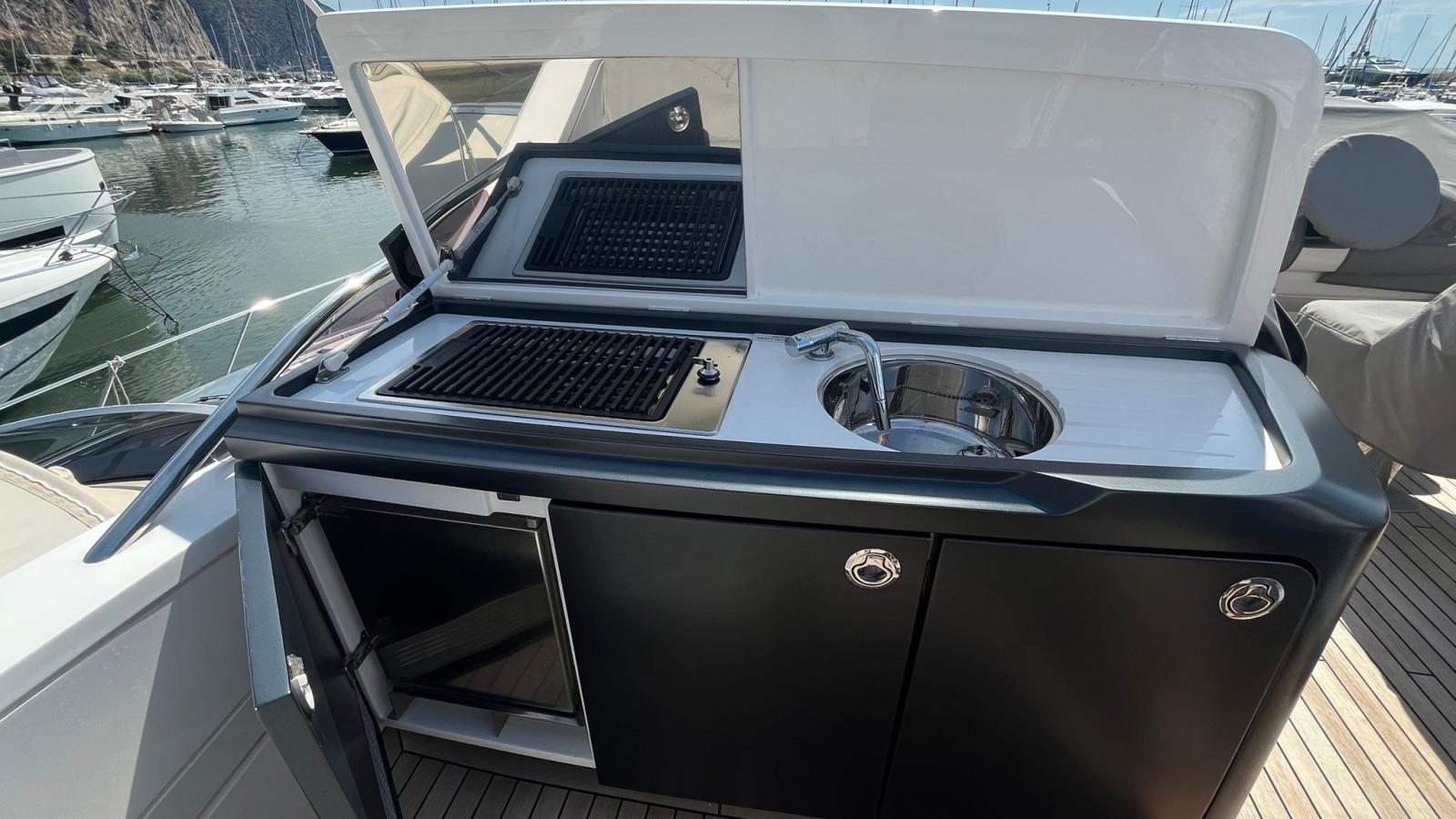 BBQ/ Grill (sul fly), Collegamento internet satellitare (sistema Starlink), Dissalatore (180 L/h).